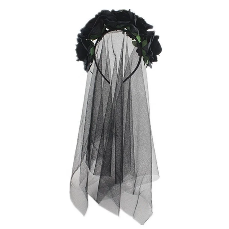 Halloween Accessories Rose Flower Headband Veil lace Hairband Mexican Day Halloween Party Decorations