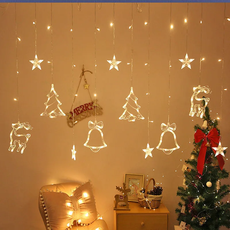Light Emitting Diode Deer Bell Christmas Tree Curtain String Light Christmas Ornament Home Decoration Christmas Party Curtain String Light