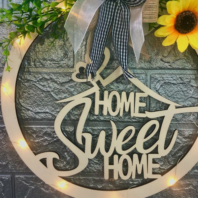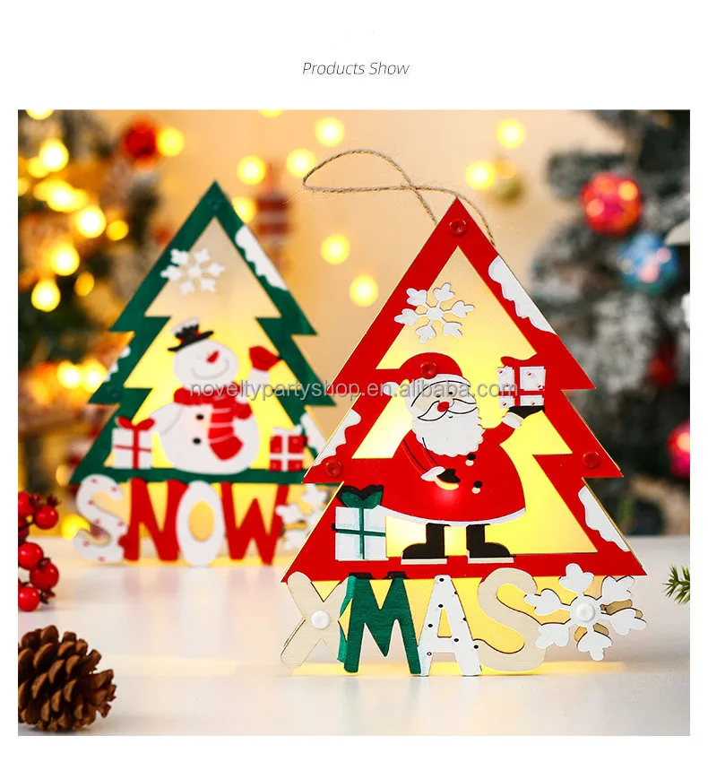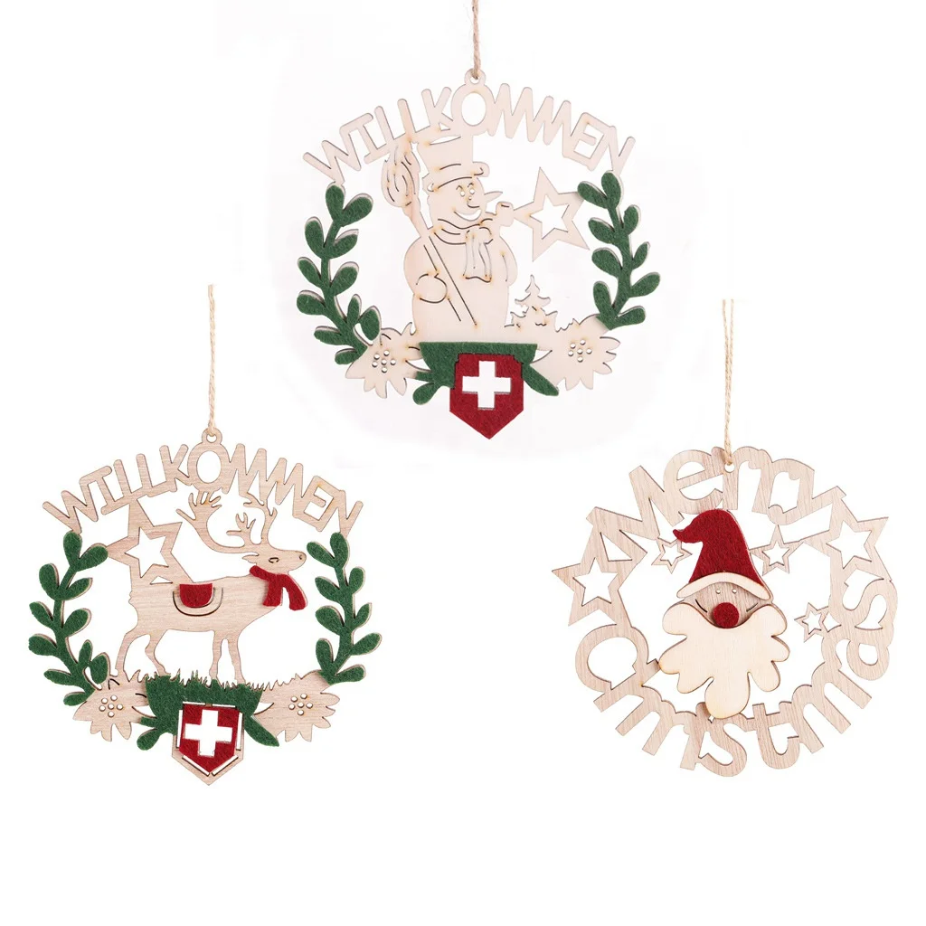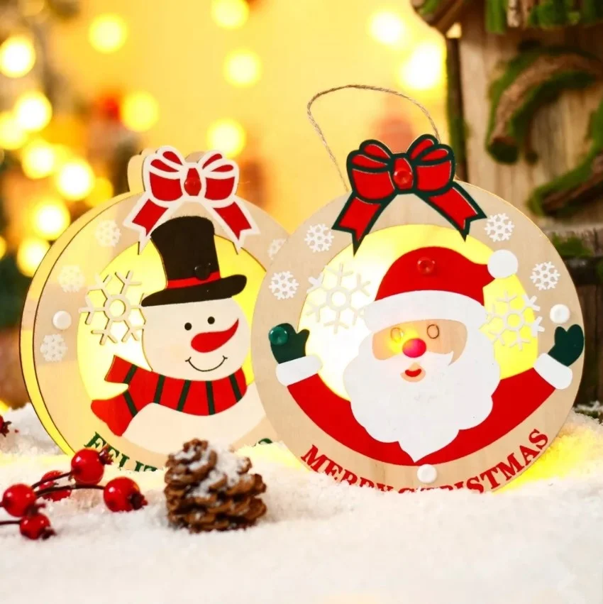 New Christmas Hollow Wreath with Light Wooden Signs Home Decoration Welcome House Number Christmas Wooden Round Door Decoration