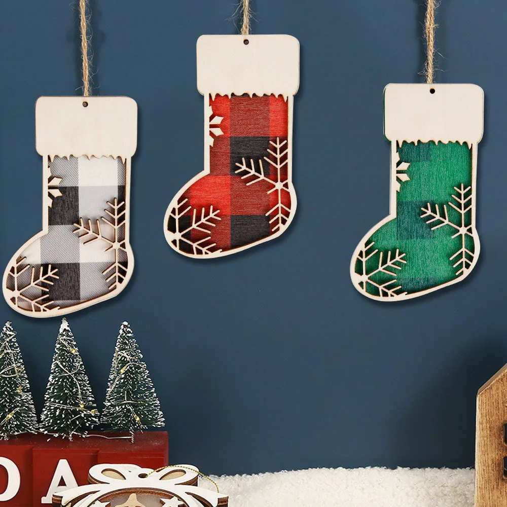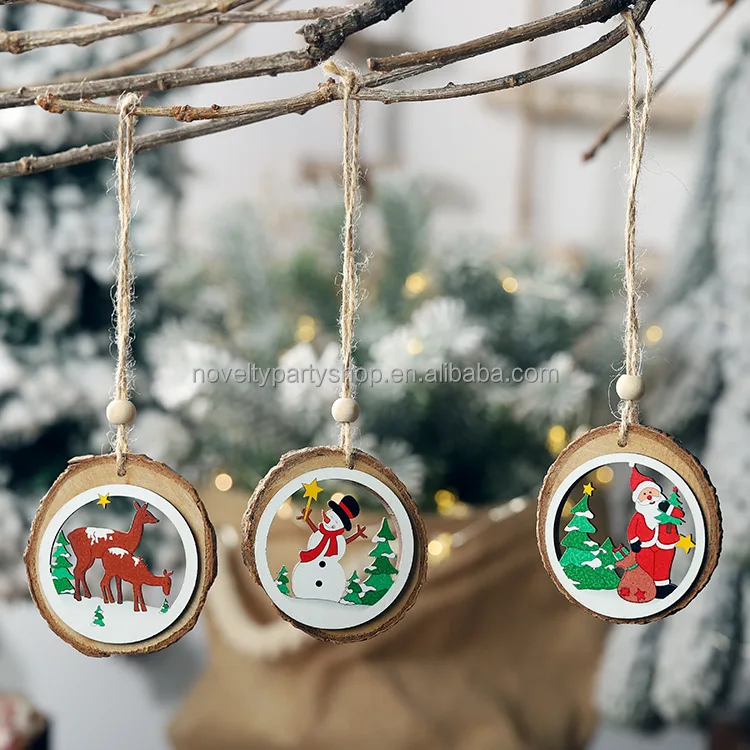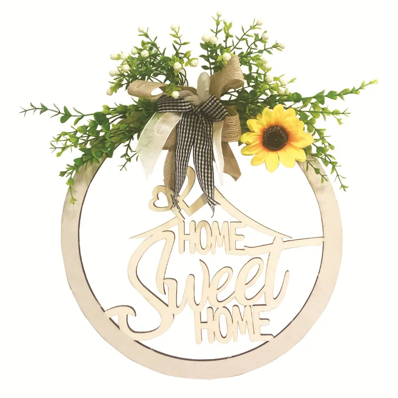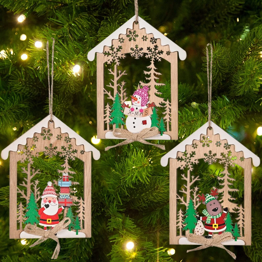 New Christmas Hollow Wreath with Light Wooden Signs Home Decoration Welcome House Number Christmas Wooden Round Door Decoration