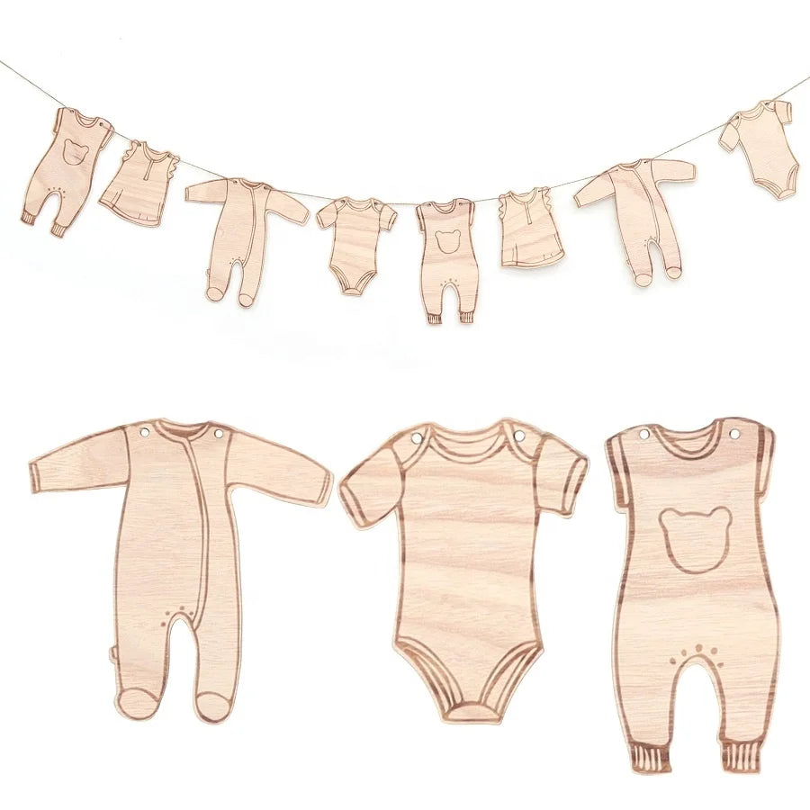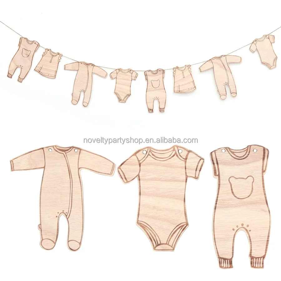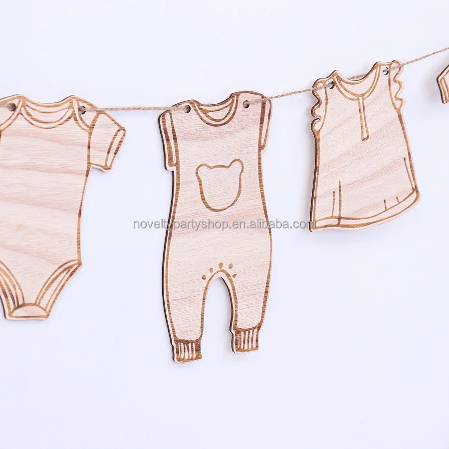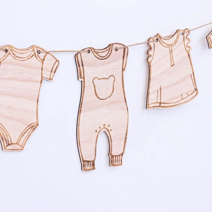 custom unisex plywood party garland aqiqah decoration Baby Shower Bunting nature material clothes Baby Shower Bunting Decoration