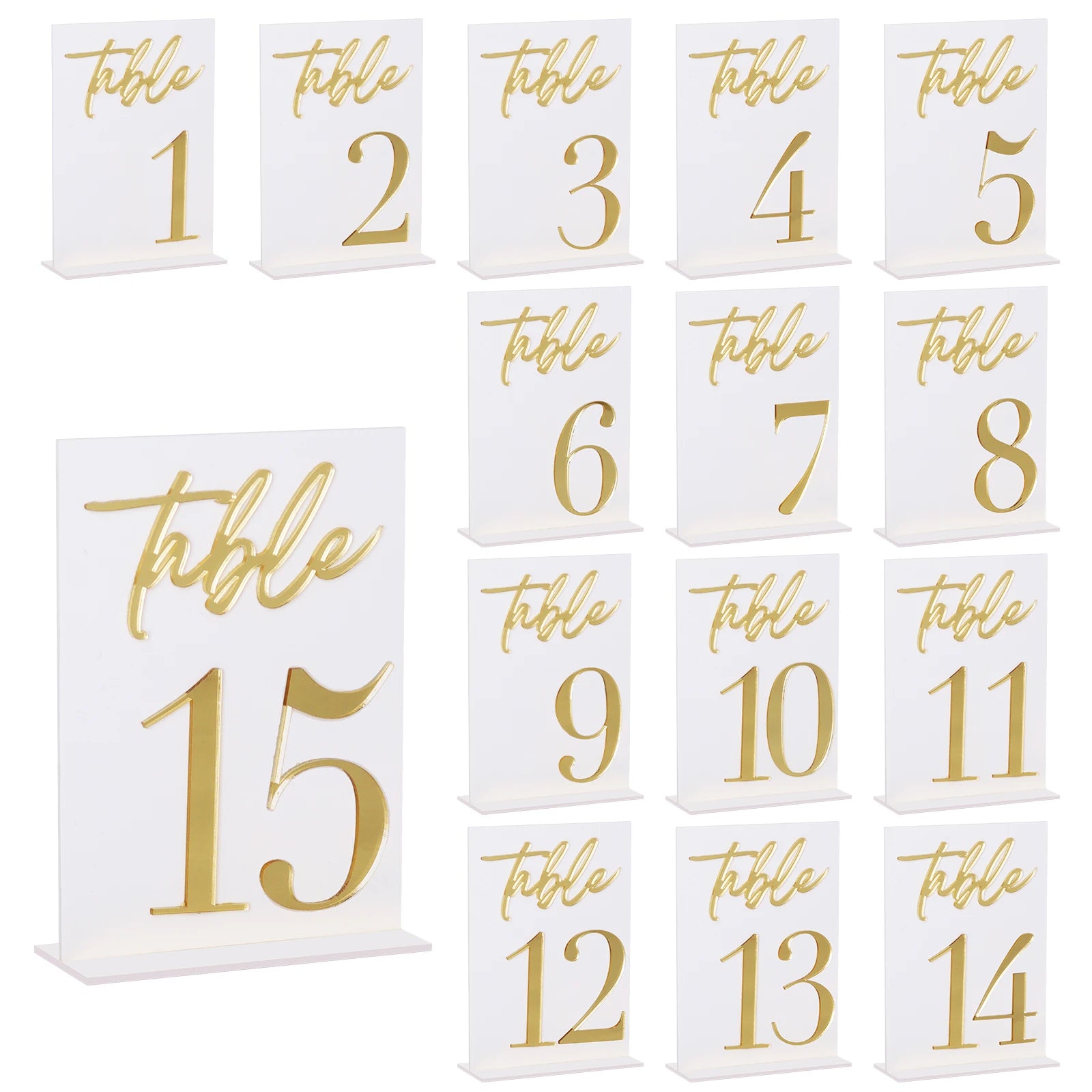 5*7 Inch 3D Acrylic Table Numbers and Holders Wedding Reception Party Restaurant Centerpieces Gold Table Number Signs