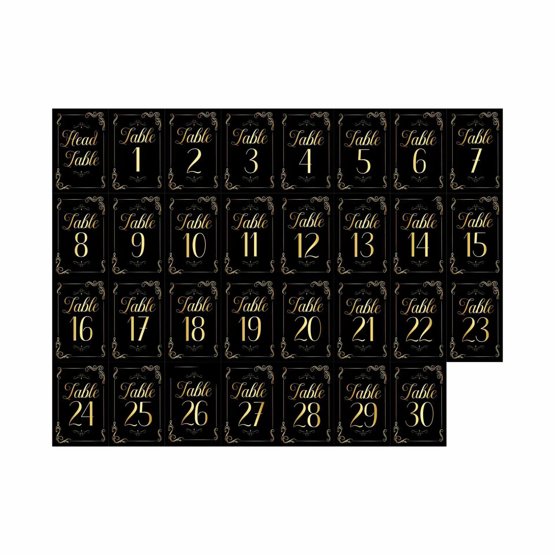 Double Hot Stamping Place Card+Holder Holder Stand Wedding Anniversary Birthday Restaurant Black And Gold Table Numbers Card