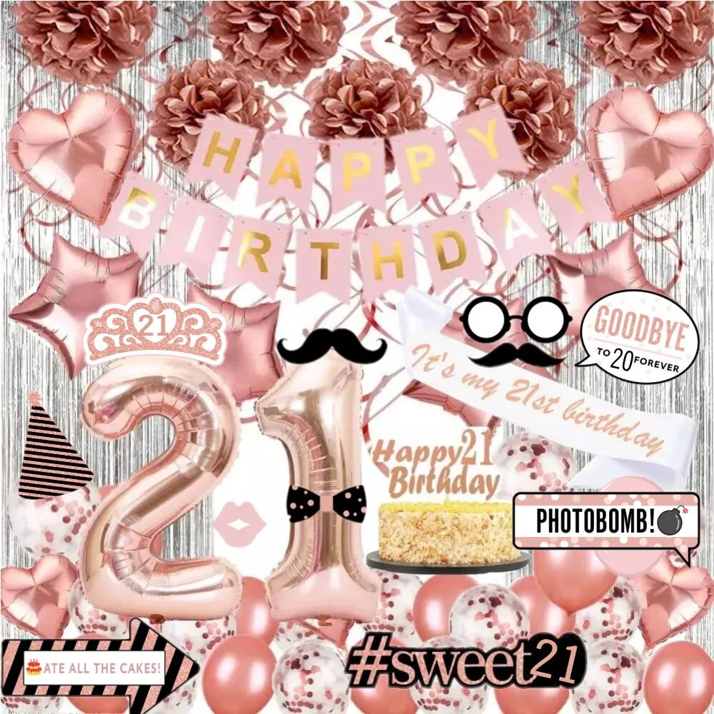 1set includes: 2pcs 18inch rose gold star foil balloon 2pcs 18inch rose gold heart foil balloon 1set 16inch rose gold happy birthday foil balloons 1pcs 10m ribbon 1pcs plastic straw 12pcs 12inch rose gold latex balloons 8pcs rose gold confetti balloons 1pcs rose gold sequin table cloth |