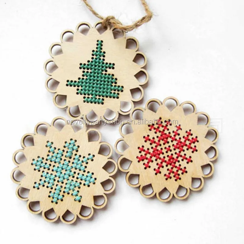 10 DIY Gifts Blank Wooden Key Ring DIY Needle and Thread Earrings Necklace Wood Cross Stitch Kit