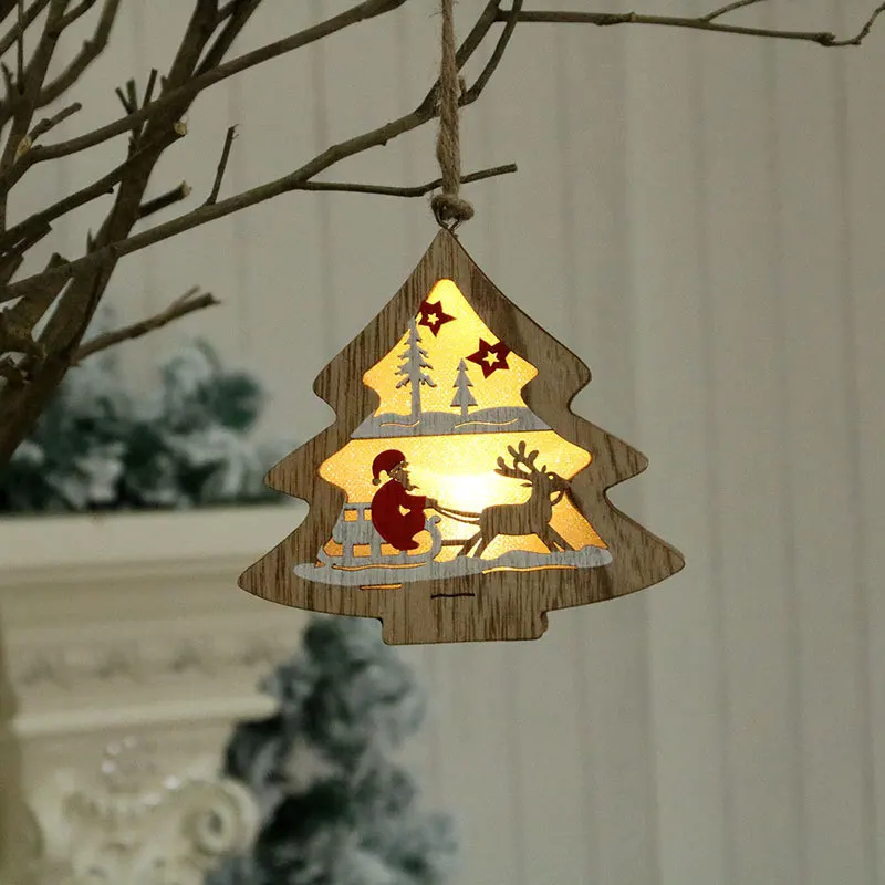 2020 New arrive Christmas decoration wooden luminous pendant Christmas children small gifts Christmas tree decoration pendant