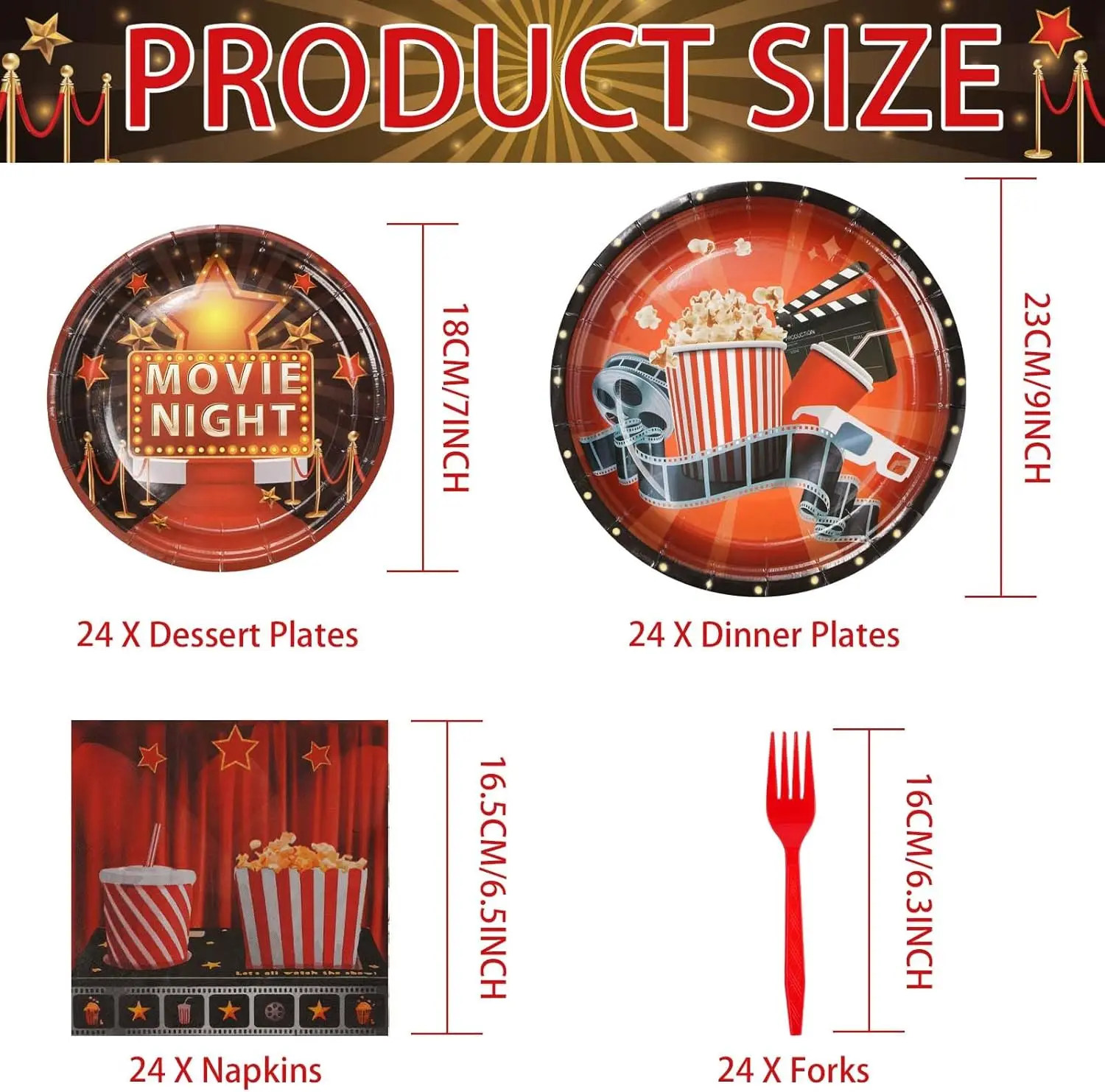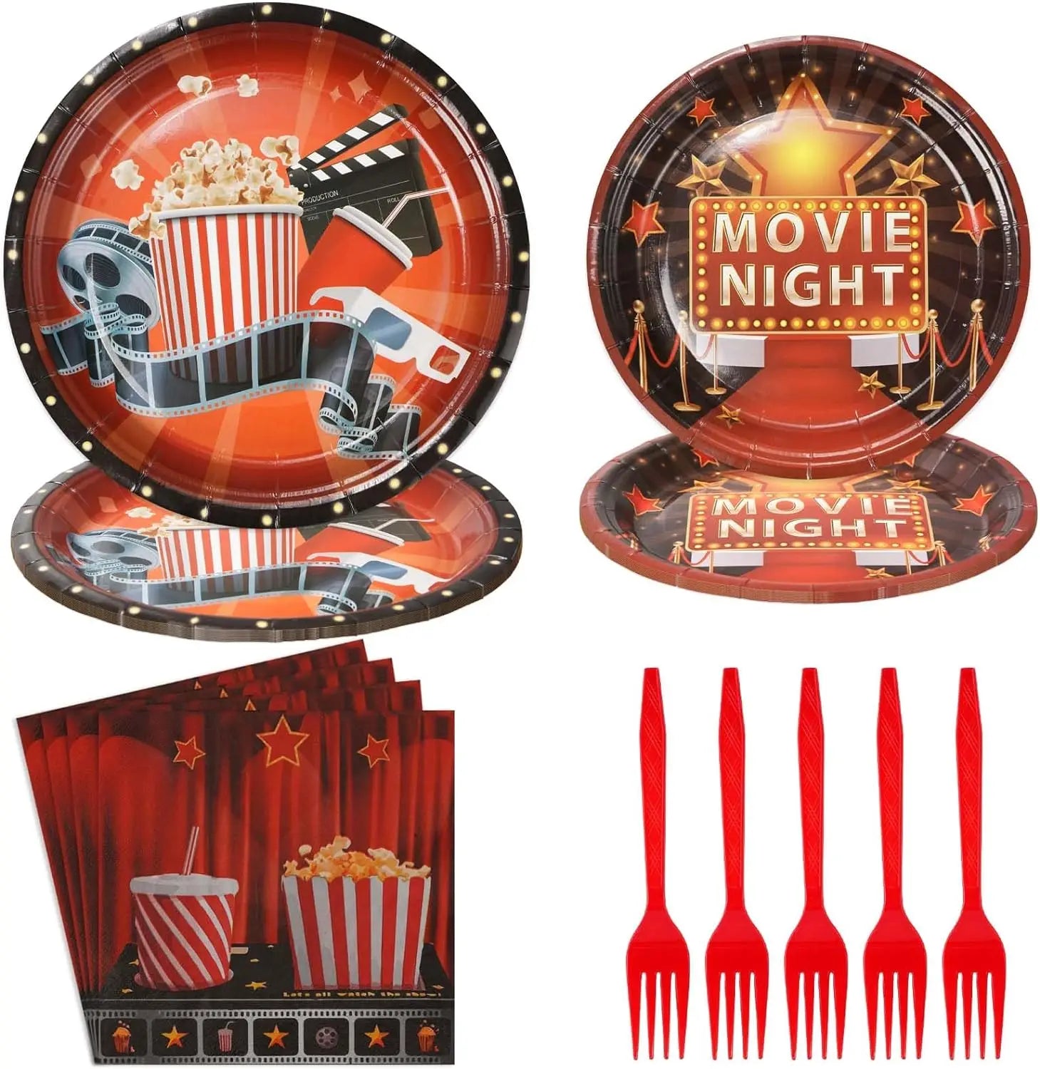 96 Movie Night Party Supplies Hollywood Movie Night Theater Party Paper Plates and Napkin Kits