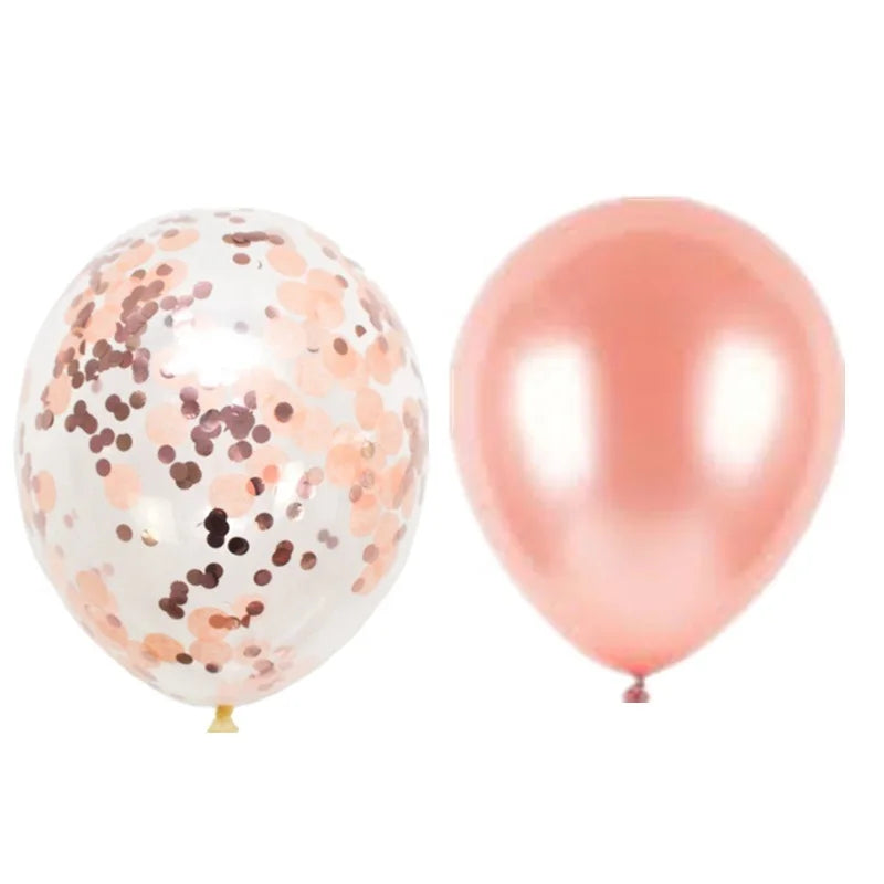 6pcs balloon(3 rose gold confetti balloon,3 pcs rose gold balloon)