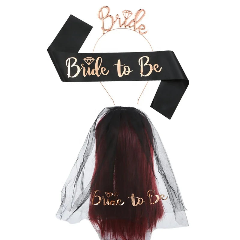 Bride single bridal party rose gold pull flower shoulder strap bridal veil bride bridal crown headband bachelor party decor