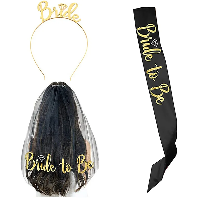 Bachelorette Party 1 Bridal Bachelorette Bridal Party Rose Gold Latte Strap Bridal Veil Bridal Crown Headband Bachelorette Party Decoration