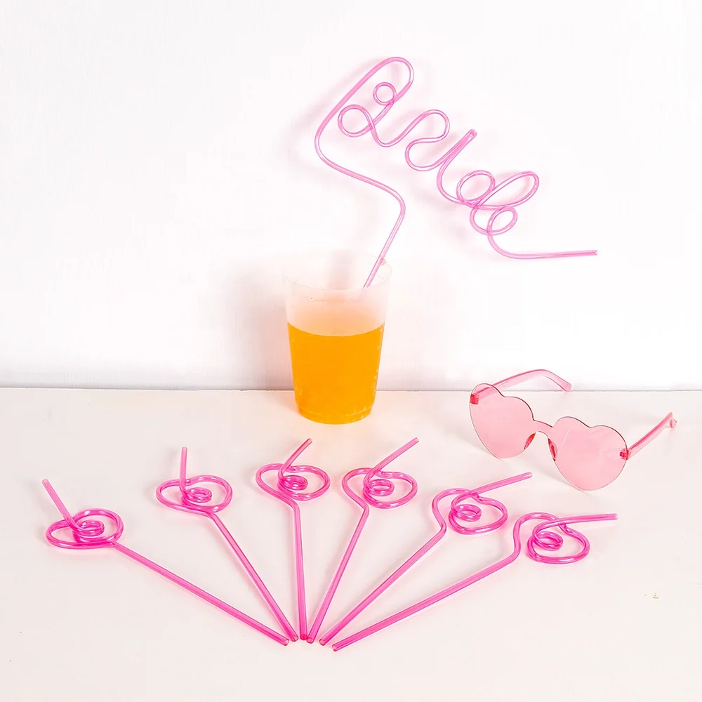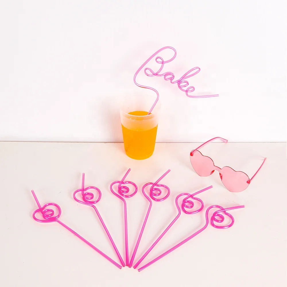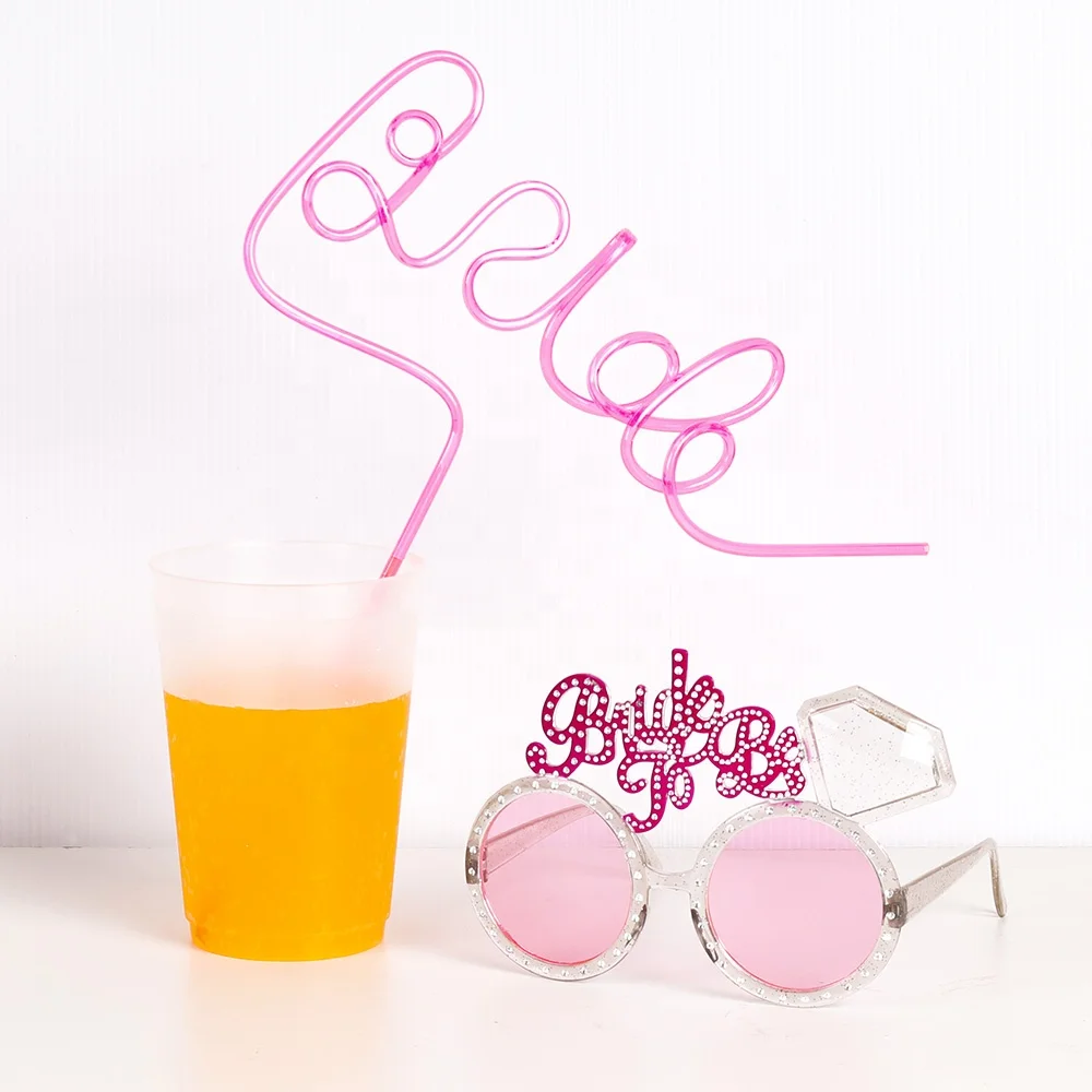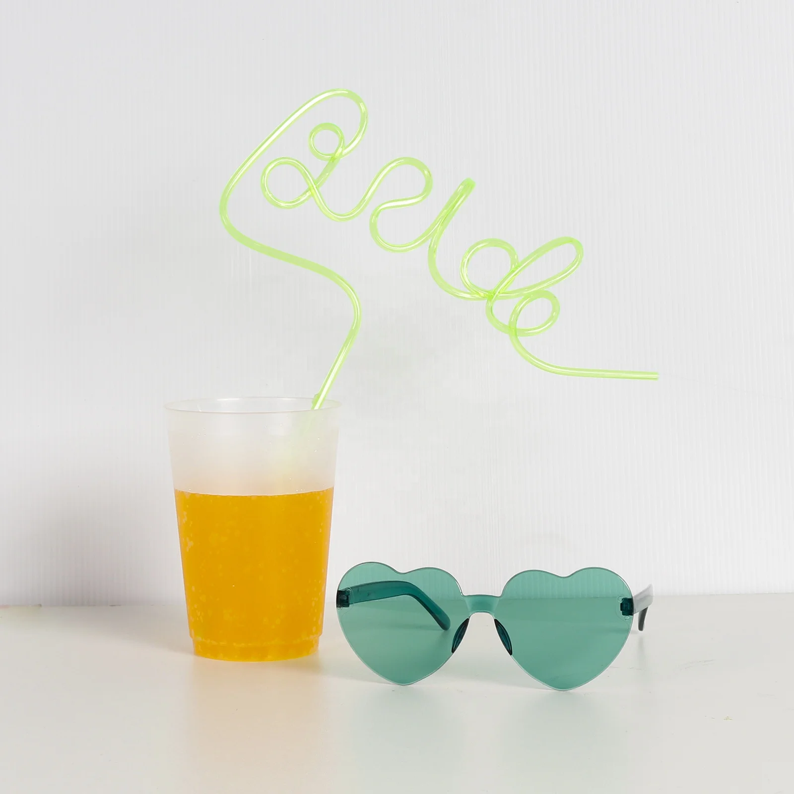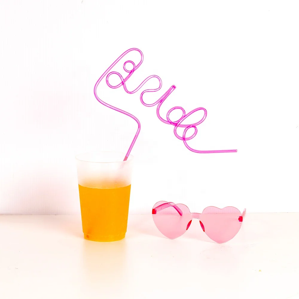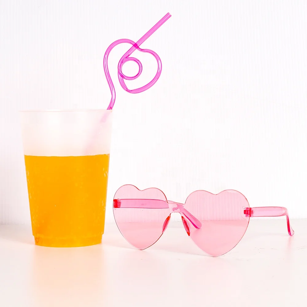 Bachelorette Party 1 Heart Shaped Sunglasses Bridal Straw and Heart Shaped Frameless Sunglasses Pink Transparent Frameless Glasses