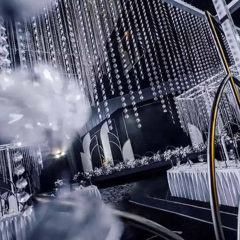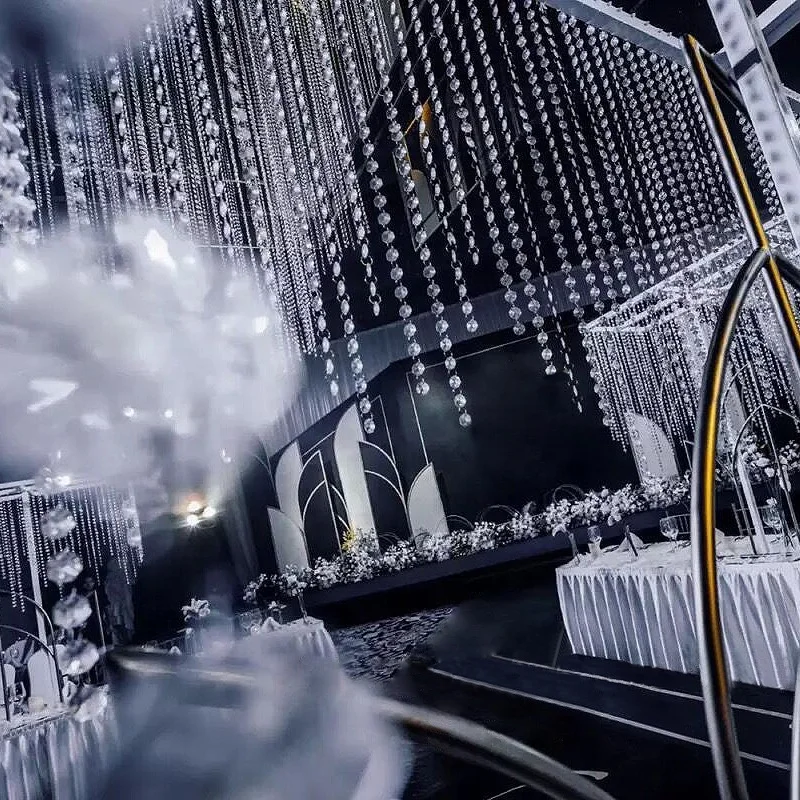 Bachelorette Party January Rice Acrylic Crystal Chandelier Decoration Transparent Crystal Beads Chain Light Garland's Family Party Wedding Decoration