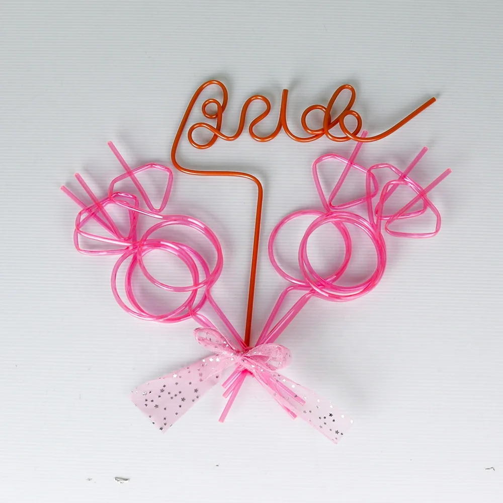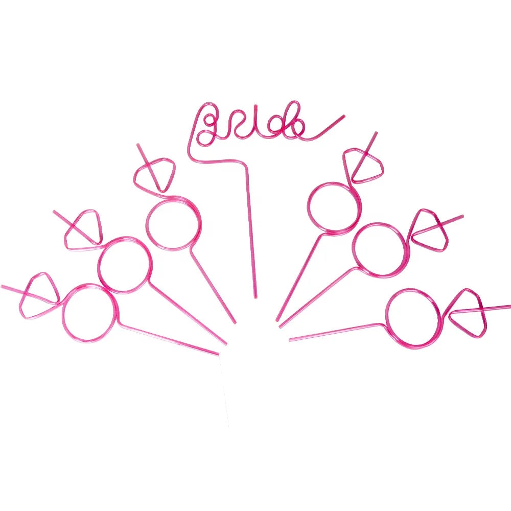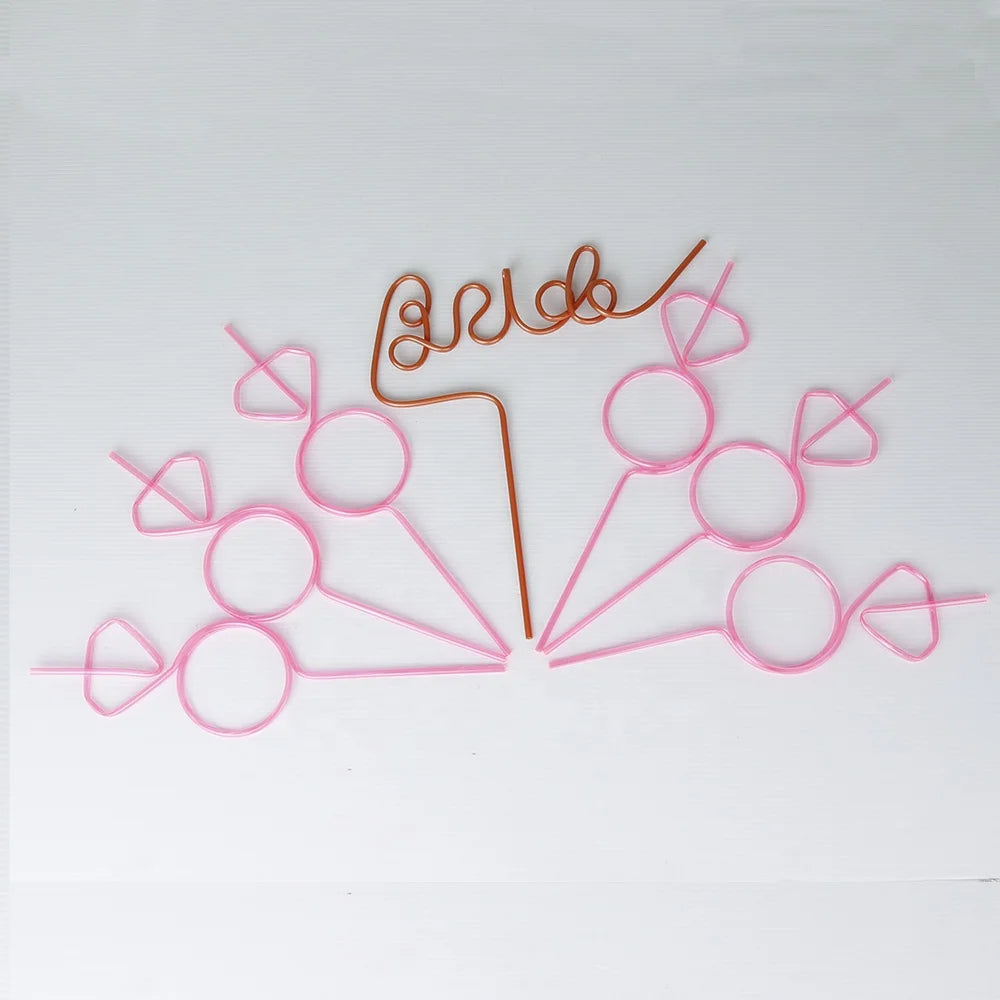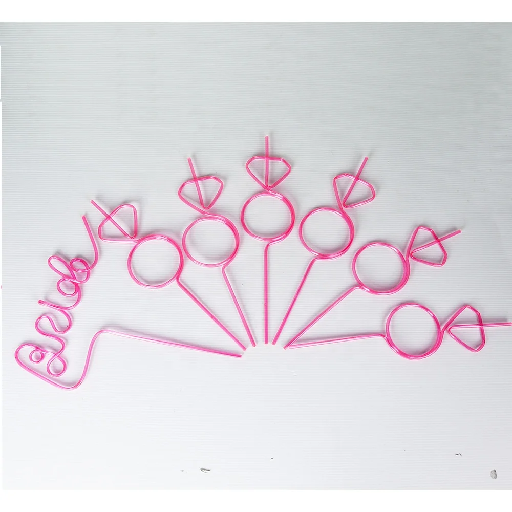 Bachelorette Party Pink Bride Diamond Ring Straw Set Plastic Smoothie Straws Diamond Ring Straws