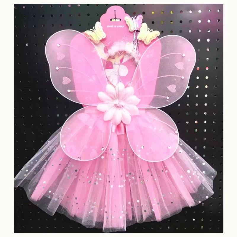 Birthday Kids Fairy Girls sequin LED butterfly wing wand belly dress suit 4pcs/set fairy cosplay party supplies