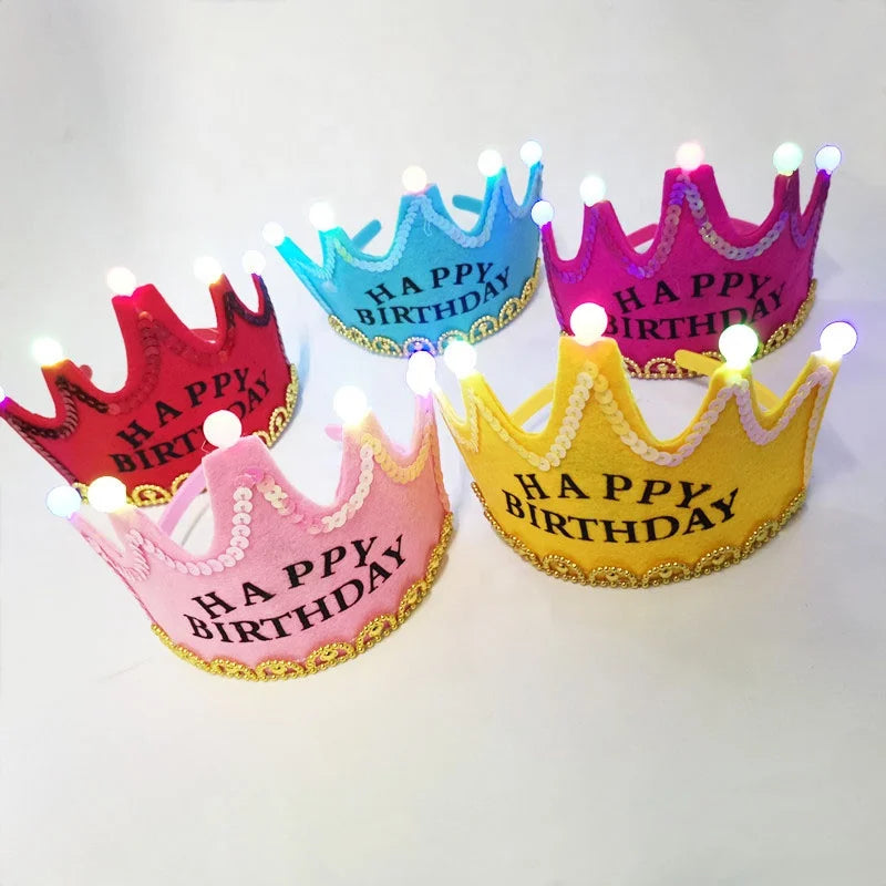 Birthday Party Accessory LED Flashing tiara Hairband Kid Princess Crown Hairband Costume LED happy birthday Tiara