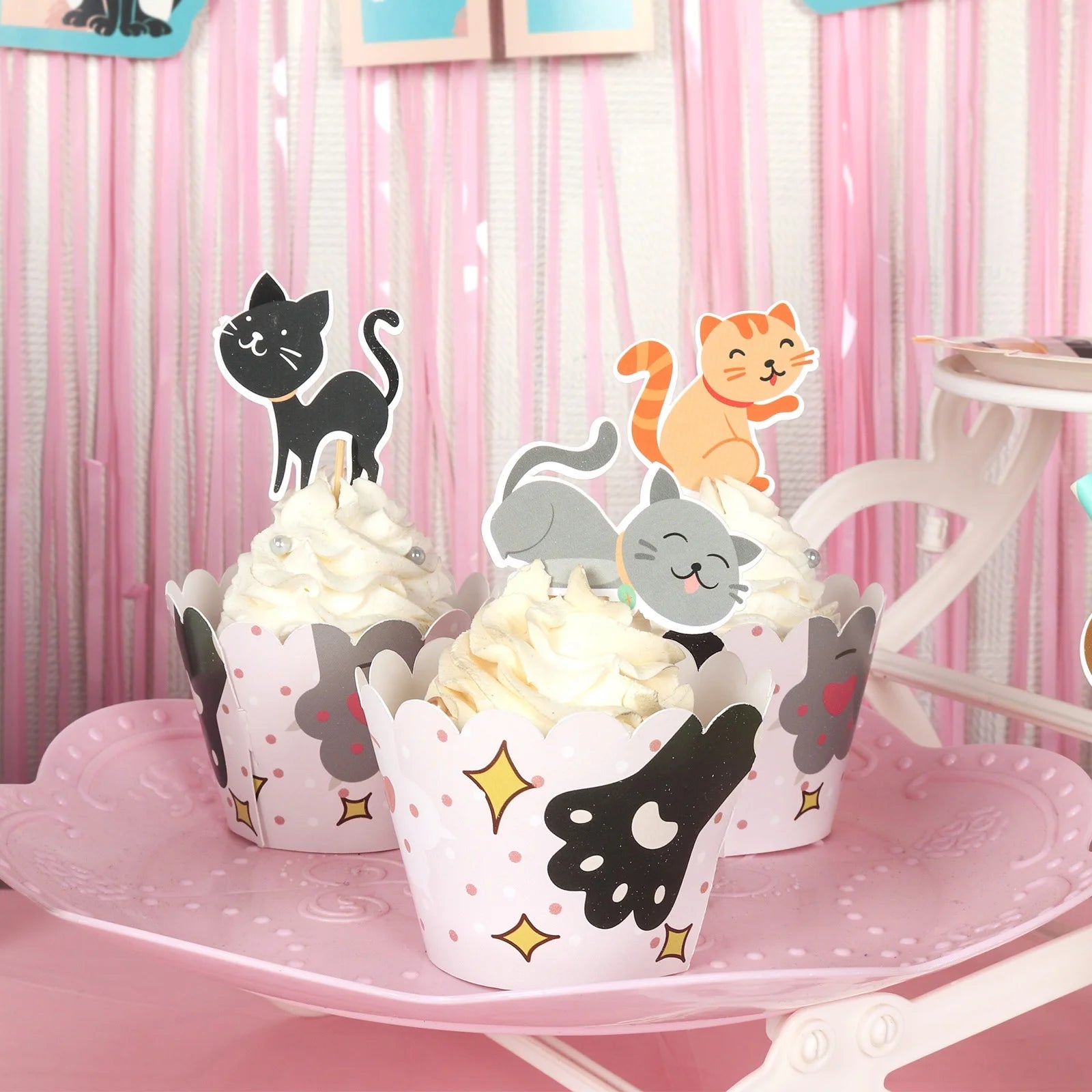 >12pcs cake toppers&wrappers kit(8*8*6cm for wrappers,about 9cm high for toppers)