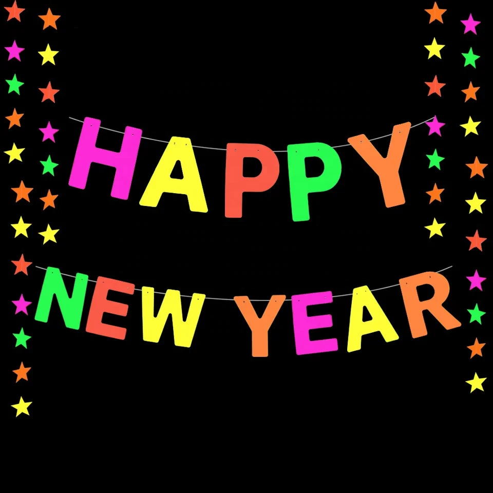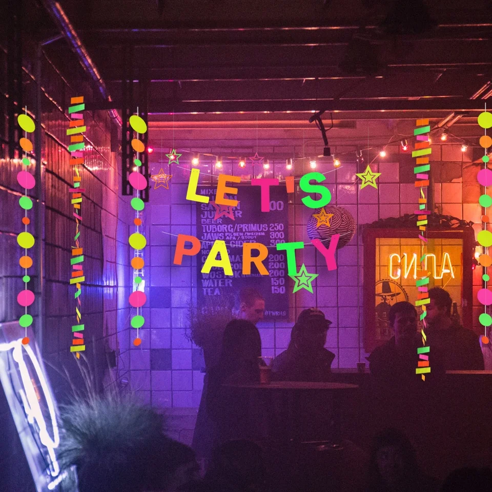 Birthday Party 2 Dark Wreath Glow Birthday Wedding Christmas Neon Party Decoration Neon Paper Banner Glow Party