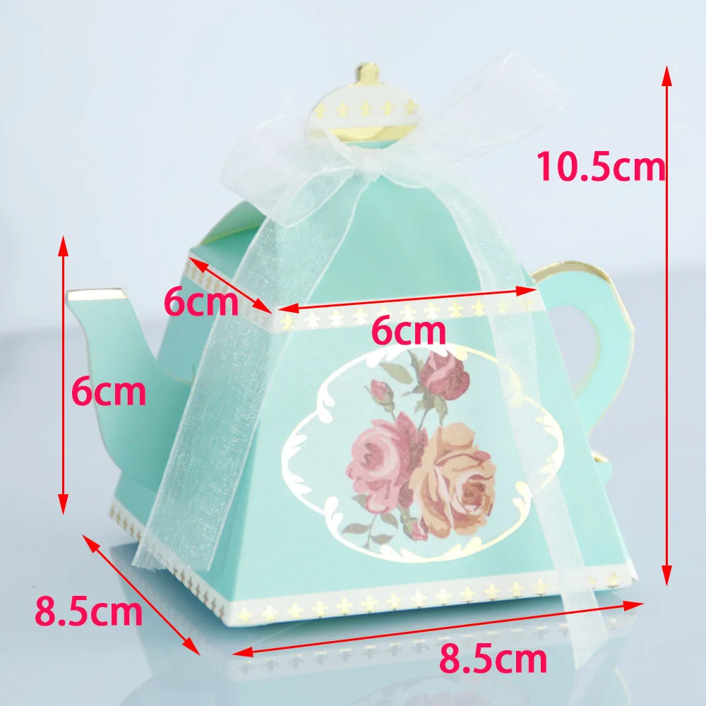 Hot Selling Custom Size Teapot Shape Folding Boxes Paper Bag Wedding Baby Shower New Year Candy Gift Boxes Party Decoration