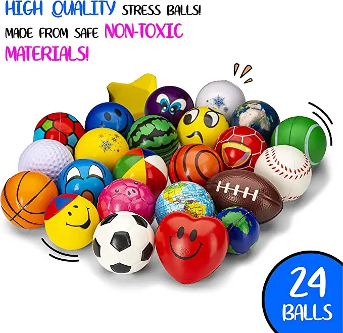 50 Stress Balls - Bulk Pack of 2.5" Stress Balls - Treasure Box Classroom Prizes Party Favors De-Stress ball gift box set