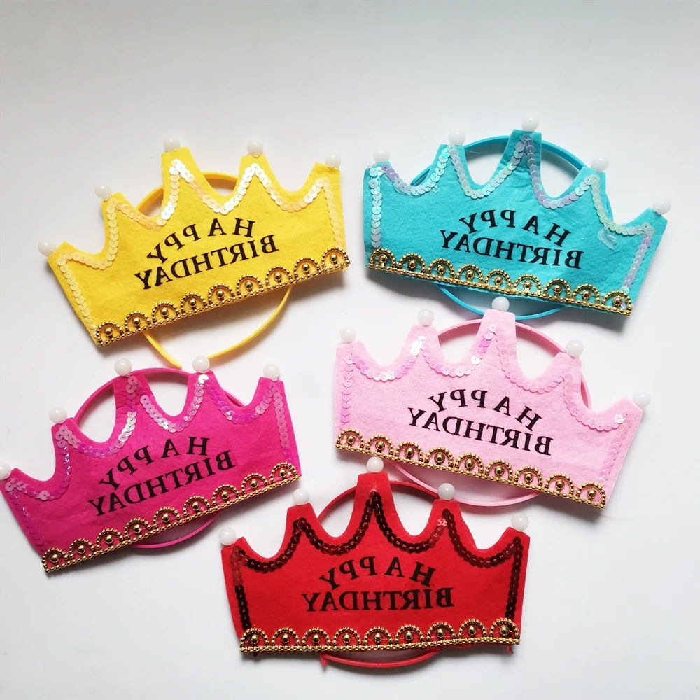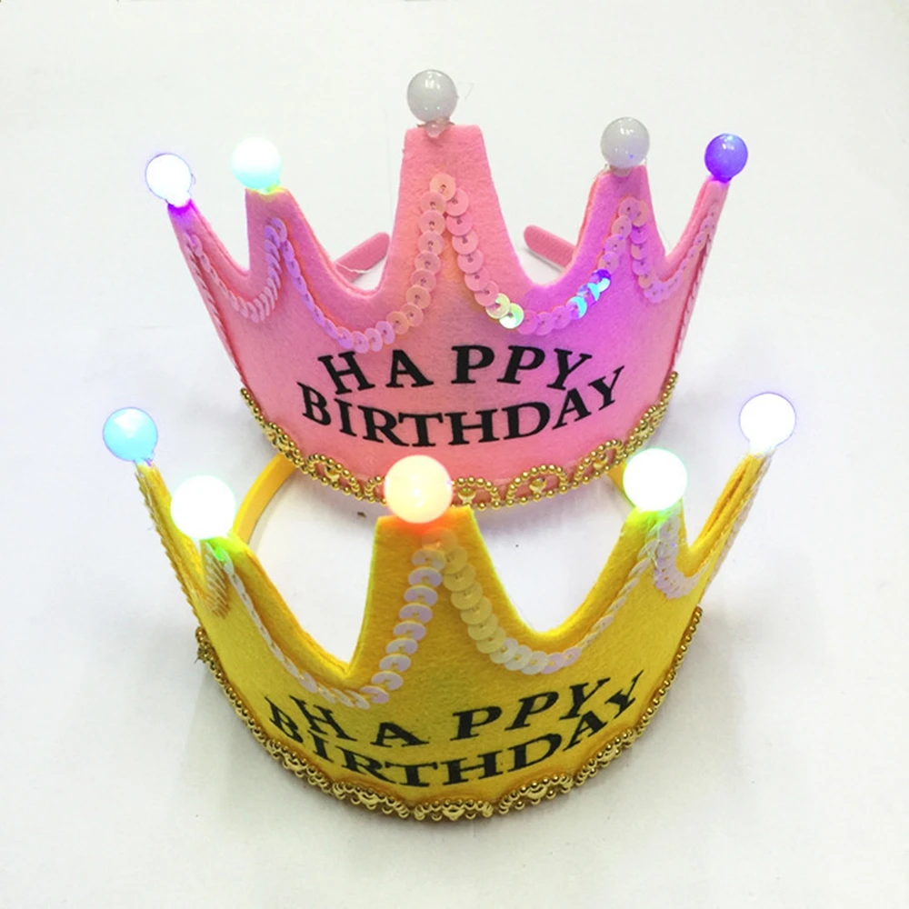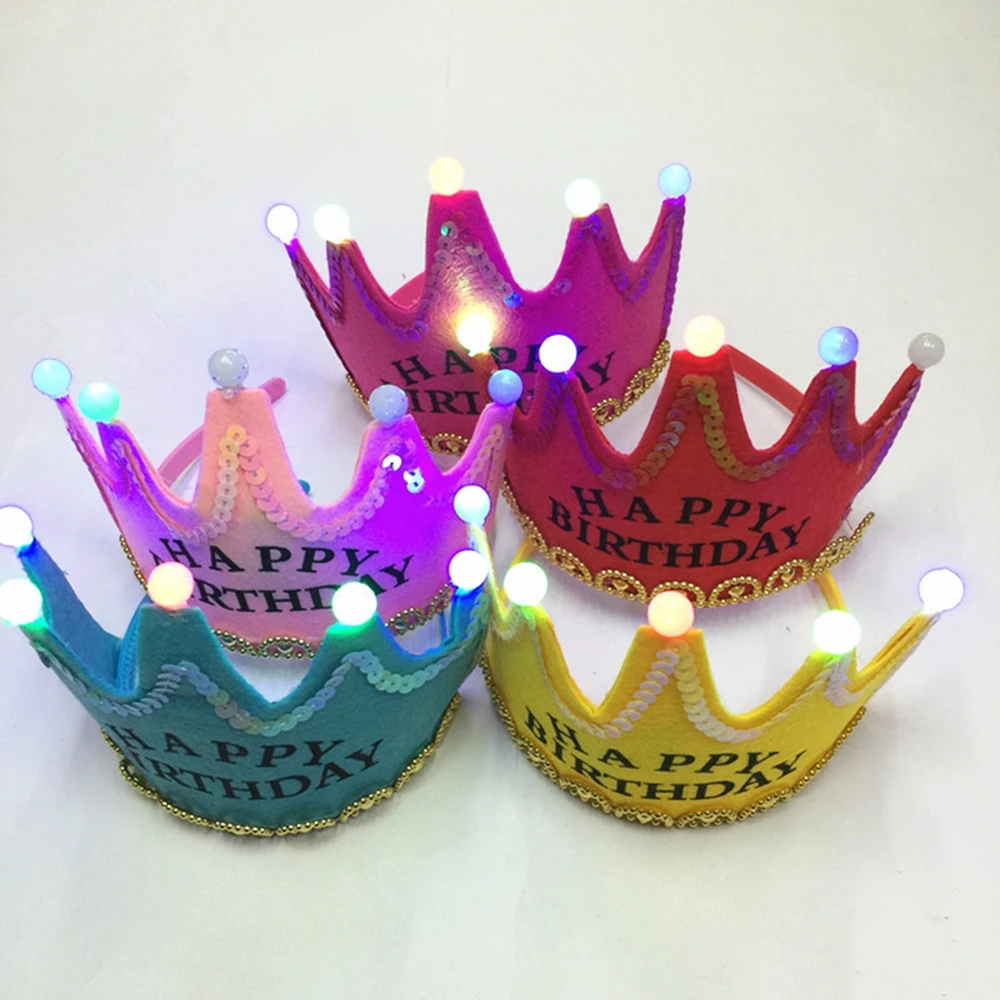 Happy Birthday Non-woven Fabrics Headband LED Flashing Light Up Crown Hairband Kids Birthday Party Supplies