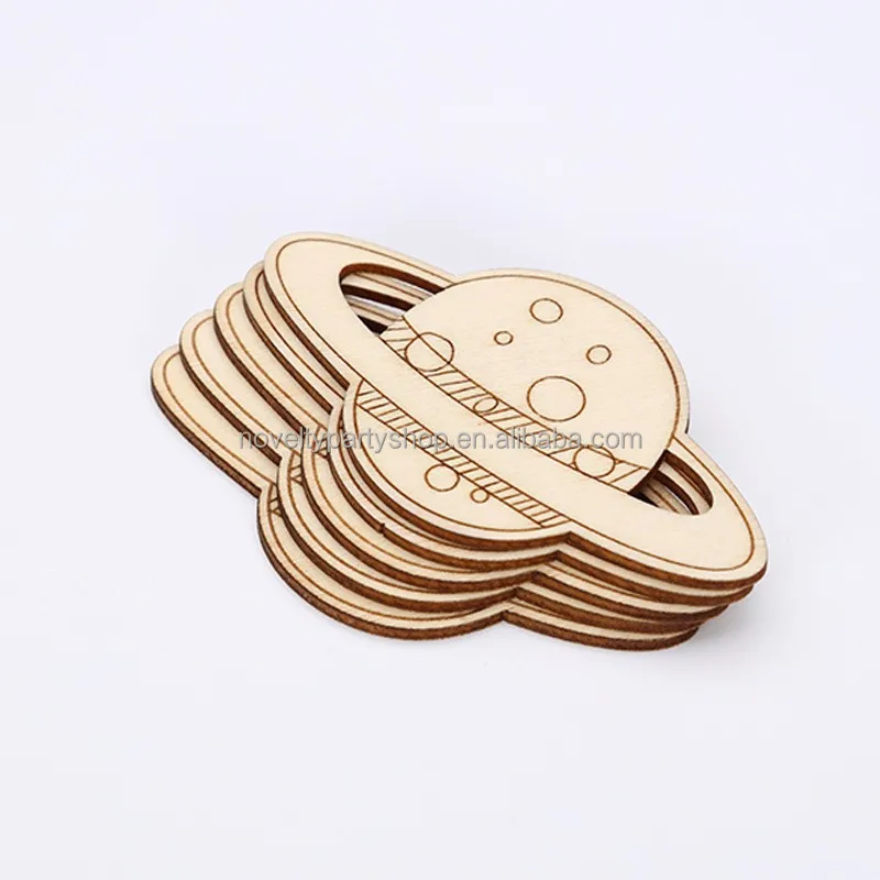 Birthday Party 2 pcs Unfinished Wooden Cut Wooden Paint Crafts Outer Space Party Gift Supplies Space Birthday Party Gift Bag Accessories