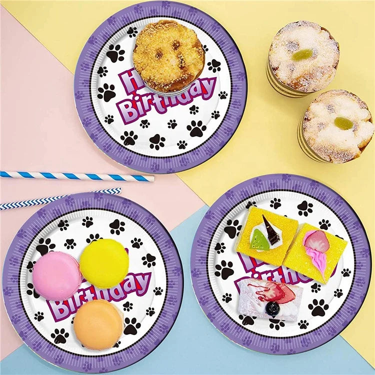 Pet Birthday Theme Party Decoration Dog paw tableware paper plate cup napkin banner set Party Supplies severs 10 guests