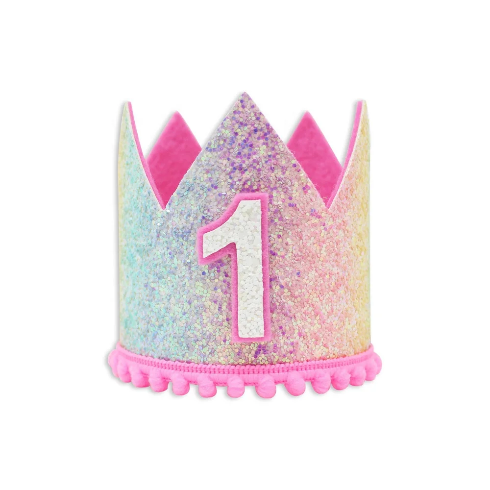 Birthday Party 2 Rainbow Baby Girl 1st Birthday Hat Headgear Headband Shiny Gold Flower Style Crown Birthday Party Crown Headband Hat