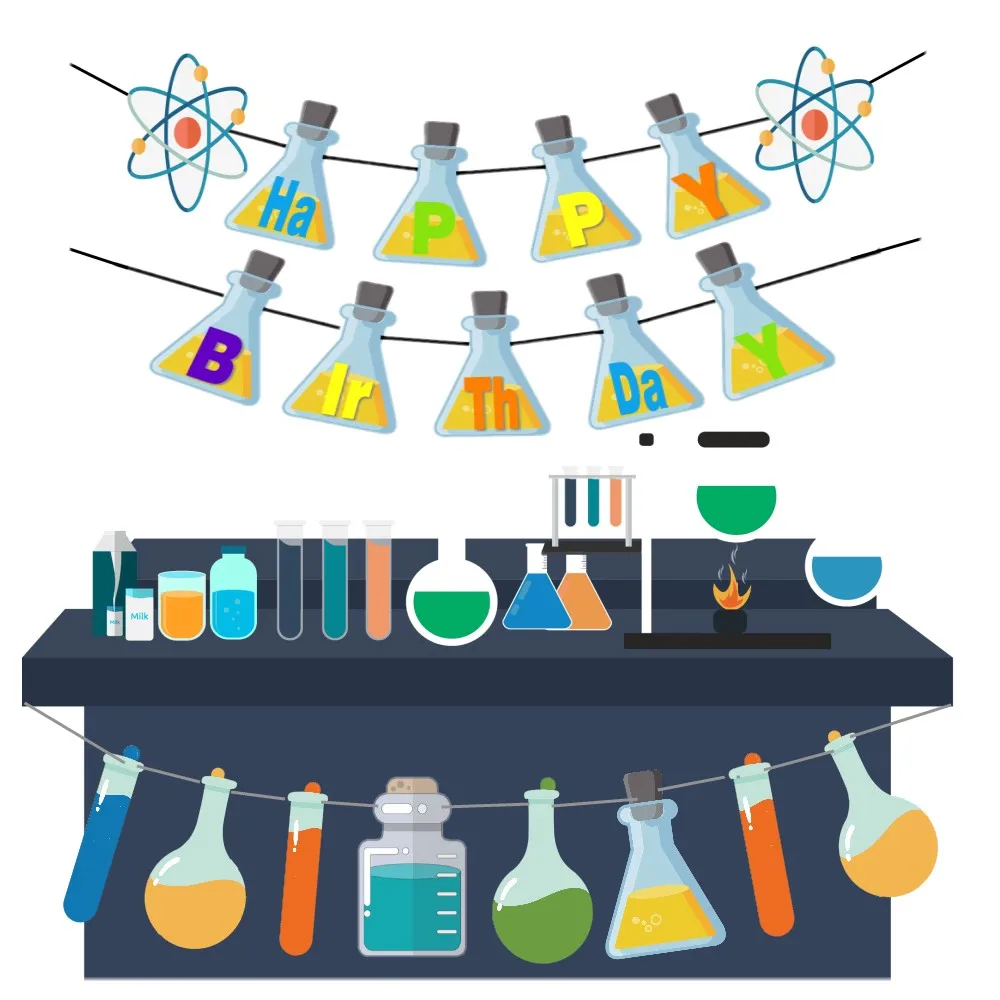 Birthday Party 2 Test Tube Banner Children's Birthday Party Mad Scientist Party Decorations Chemistry Lab Theme Support