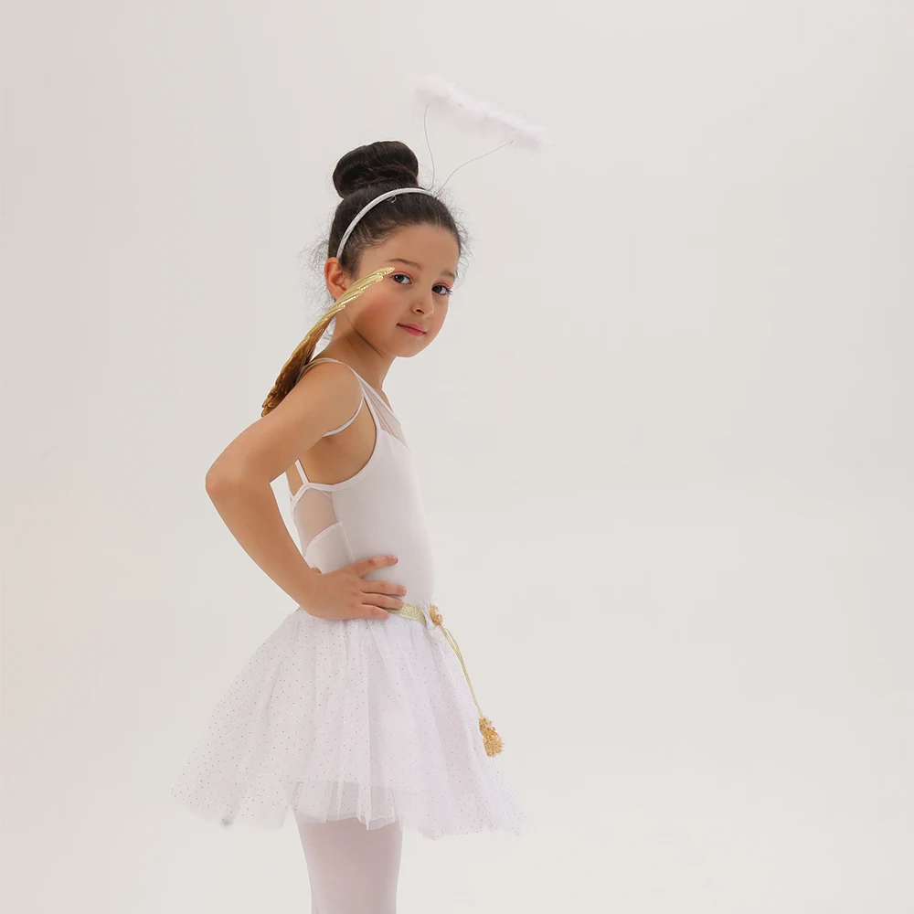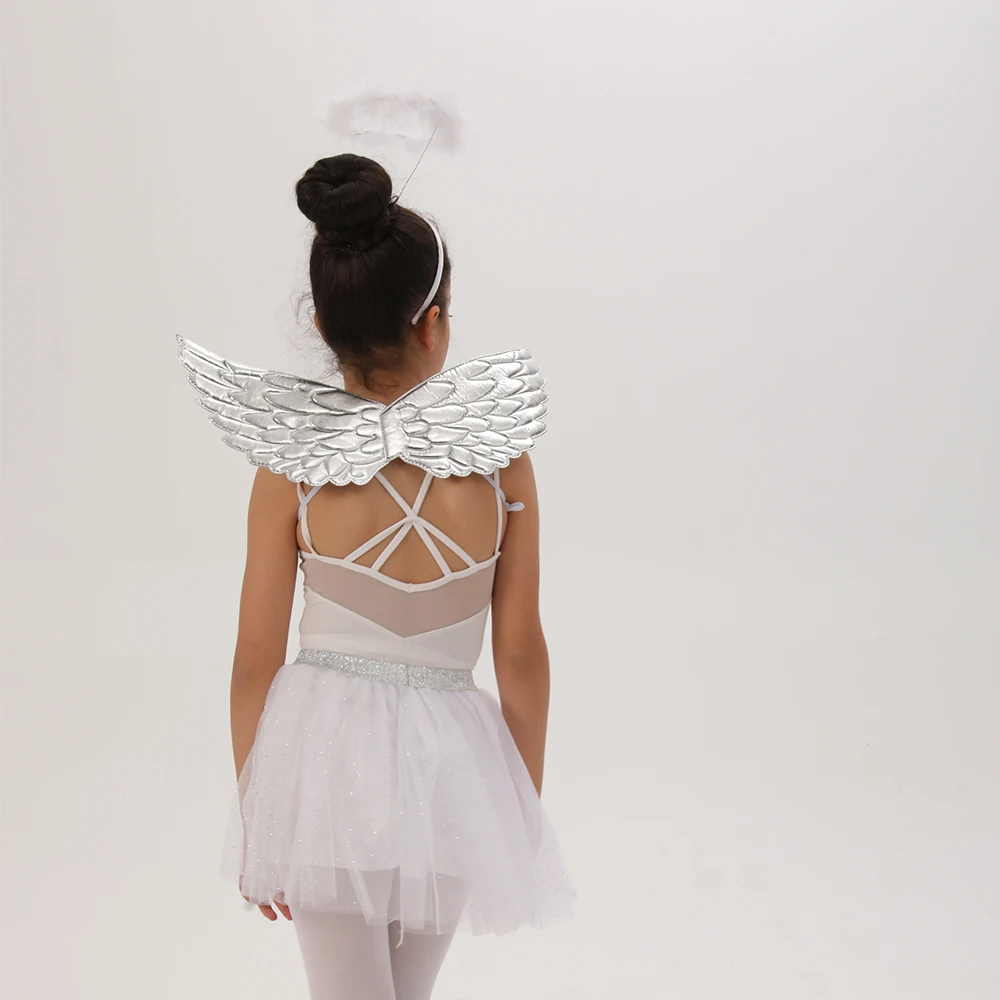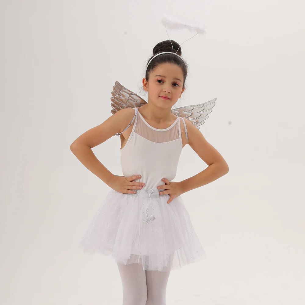Birthday Party 2 White Angel Suit Children's Birthday Party Costume Gold Silver Wings Headband Feather Skirt Dress Up