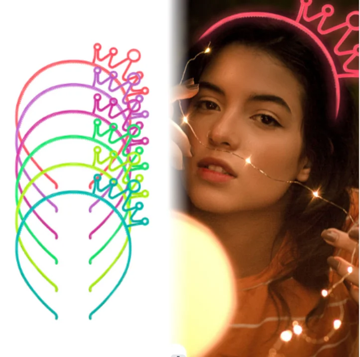 Wholesale Birthday Party Decoration Candy Color Light Up Hairband Plastic Crown Headwear