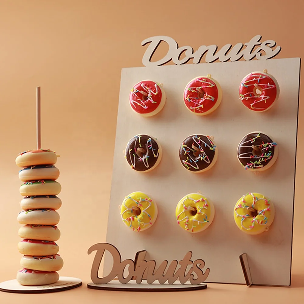 Birthday Party 2 Wooden Donut Wall Display Stand Countryside Wooden Donut Food Buffet Display Stand Reusable Countryside Donut Board Stand