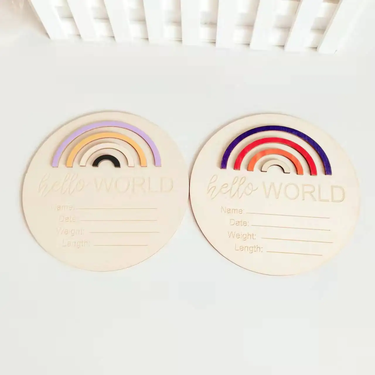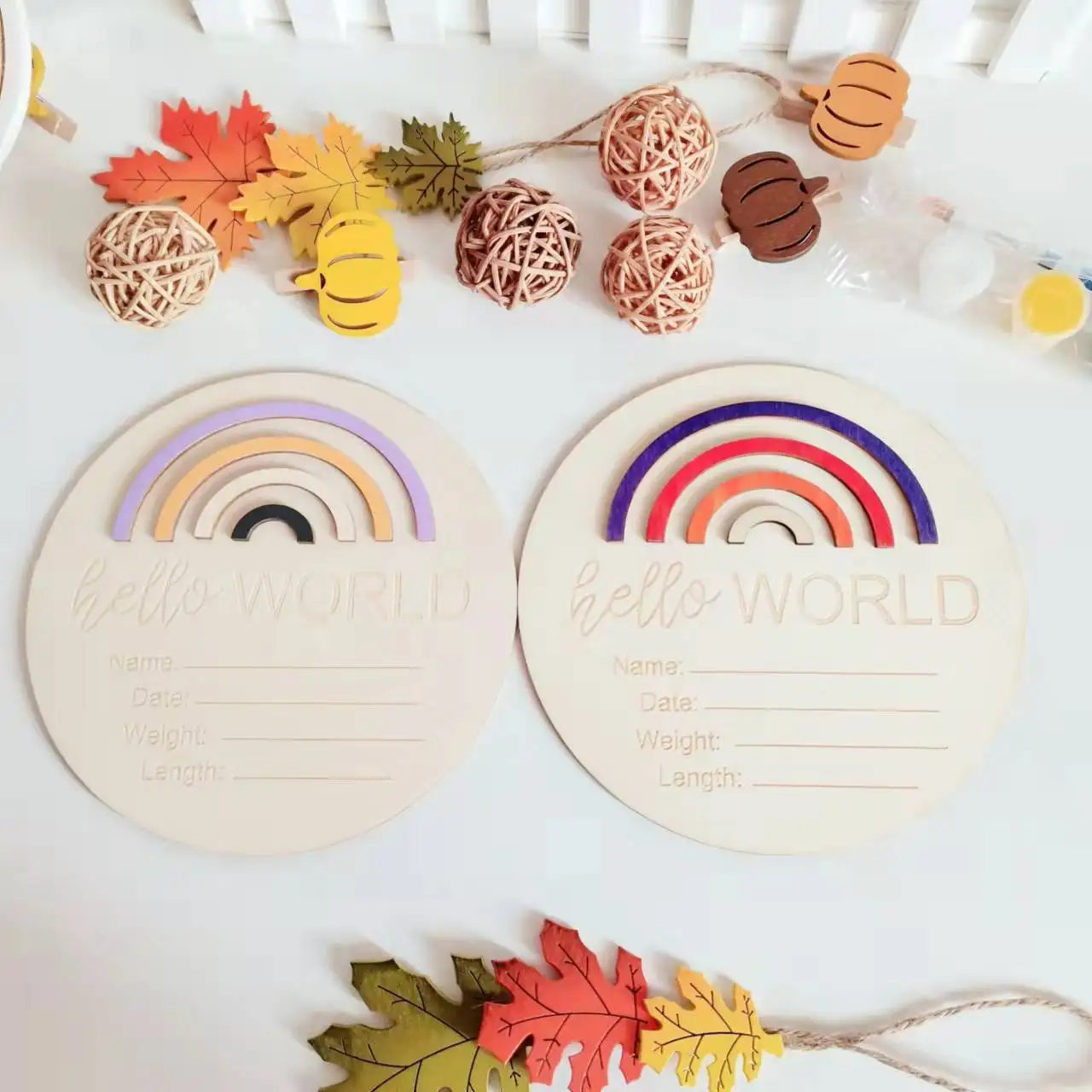 Birthday Party 2 Wooden Newborn Announcement Signs New Baby Boys and Girls Photography Props Nursery Decoration Baby Hands and Footprints Newborn Name Signs