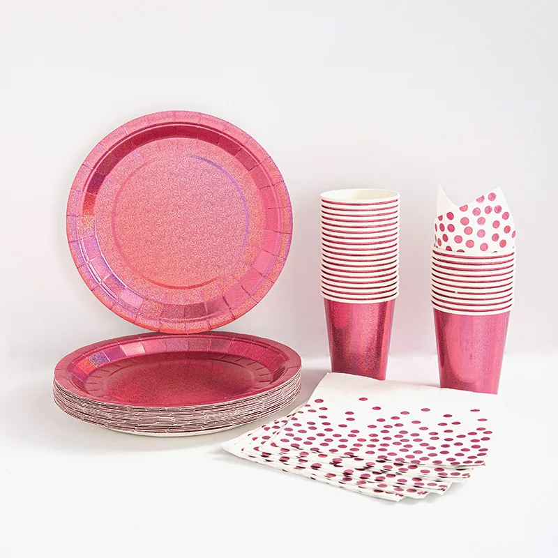 disposable Plastic Cutlery 7in dessert plate eco friendly paper dinner plate 9 oz cups napkin pink party dinnerware Decorations