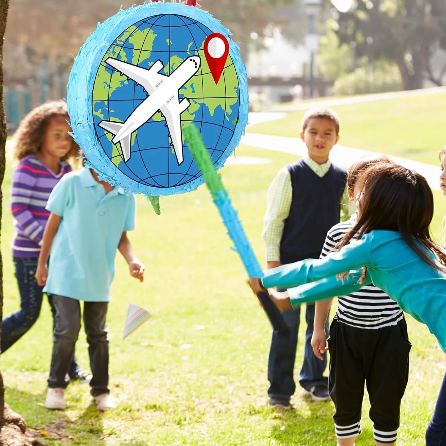 Birthday Party Carnival Party Decoration Airplane Piñata Travel Theme Piñata Earth Airplane Piñata Bat with Blindfold