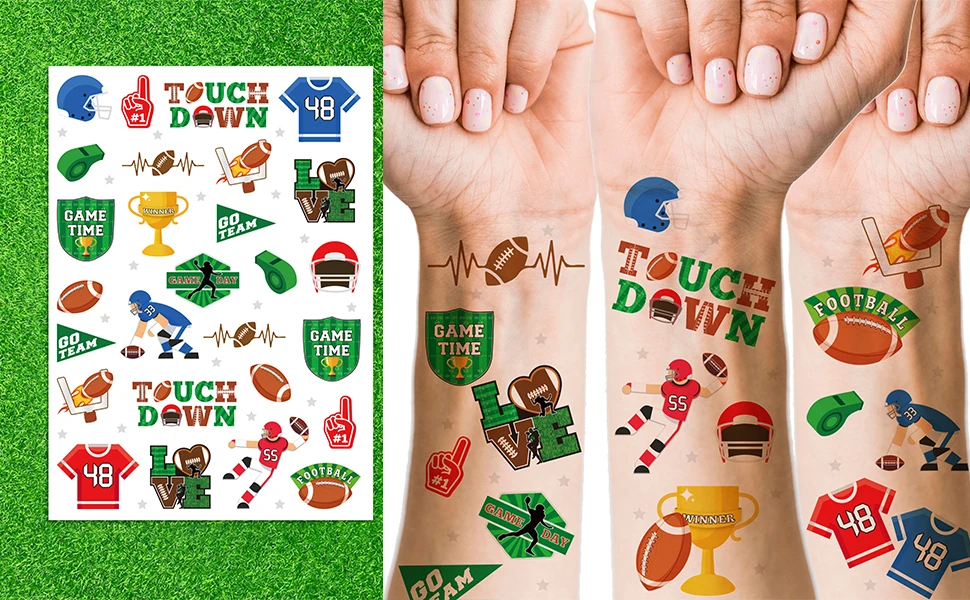 Birthday Party Football Temporary Tattoo-81, Sports Birthday Party Touchdown Team Party Supplies Football Game Party Decoration