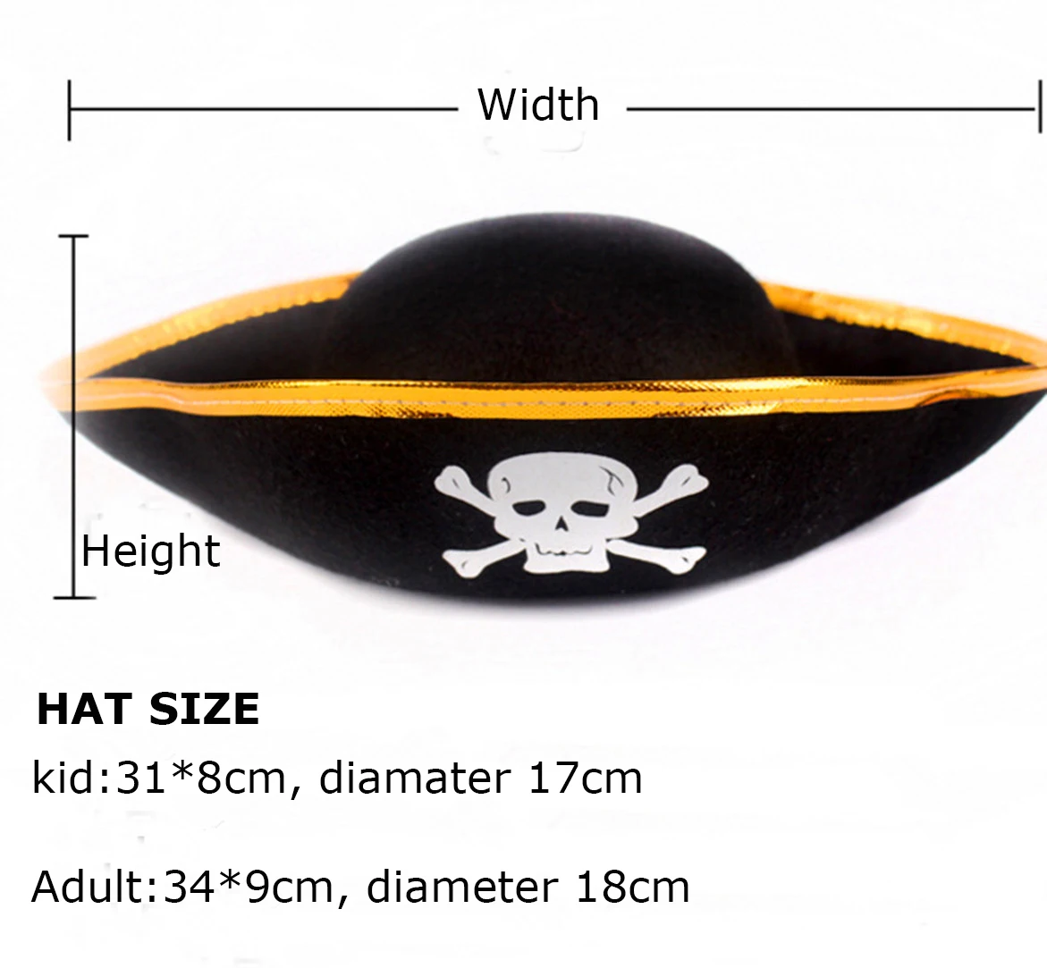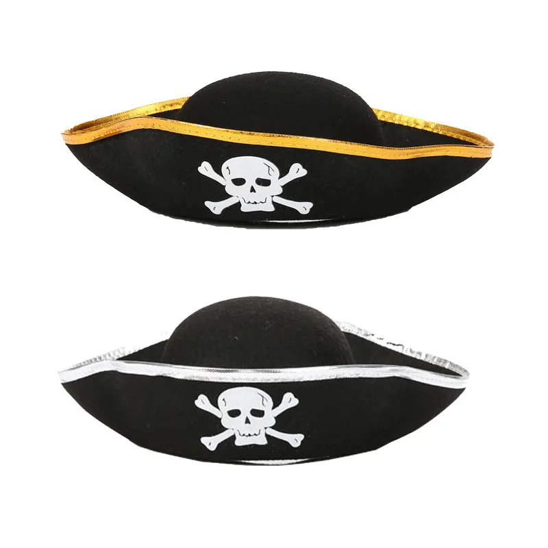 Party Decoration Kid Pirate Hat Halloween Party Cap Adult Pirate Gold Rim Cloth Cap Caribbean Captain Pirate Hat Party Costume