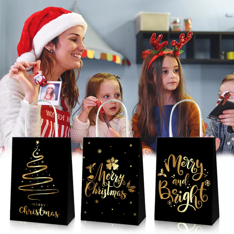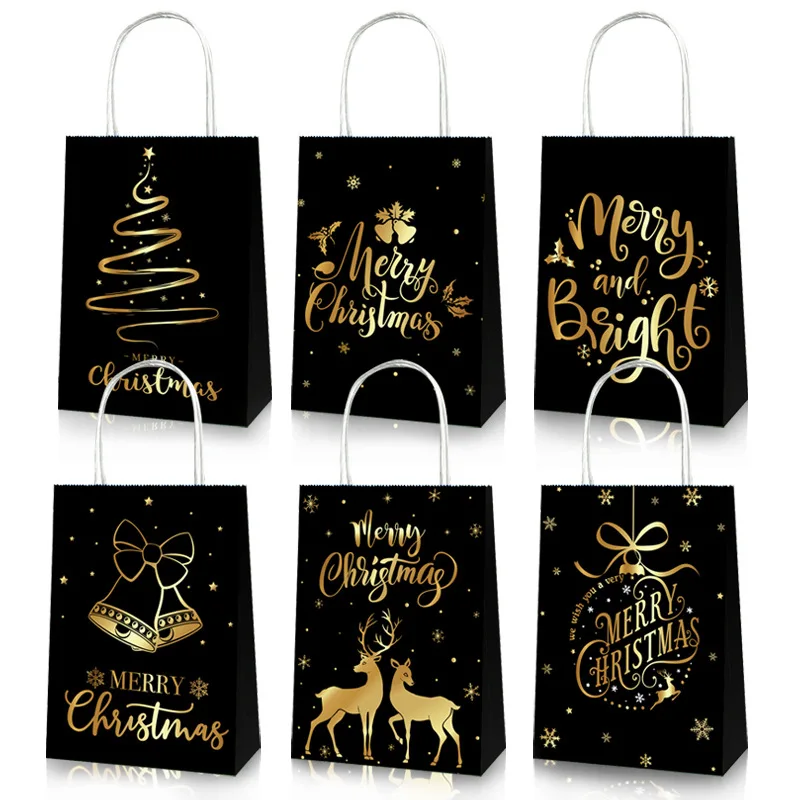 black bronzing square bottom shopping handbag Christmas theme party present supplies Santa Claus Elk kraft paper gift bag