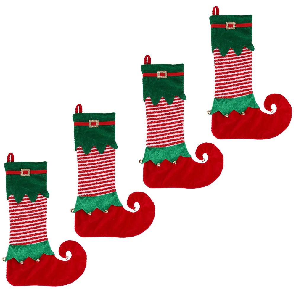 BSCI Xmas New Year party supplies gifts large stocking bell non-woven elf kincong silk stripe colorful Santa Claus socks