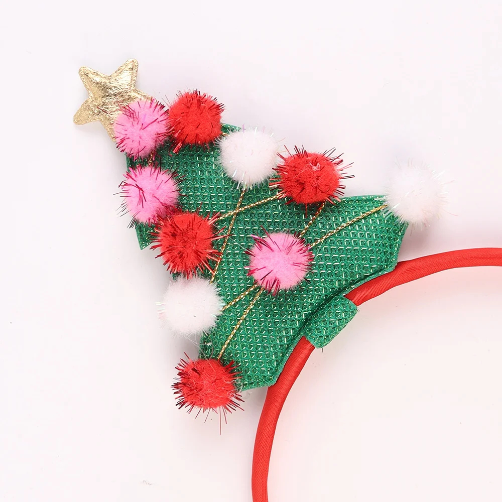 BSCI new design pentacle hair accessories Christmas Dress-up Props plush balls spring glitter sequin Christmas tree hairbands