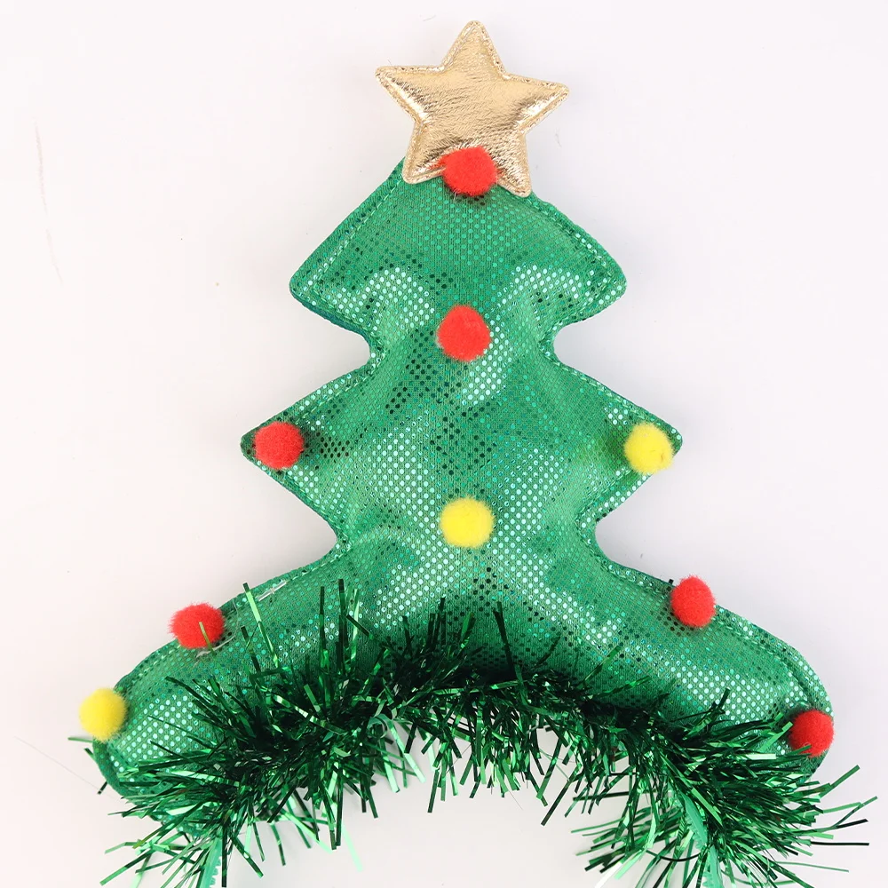 BSCI New Design Pentagram Hair Accessories Christmas Dress Up Props Pompom Spring Glitter Sequins Christmas Tree Headband