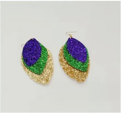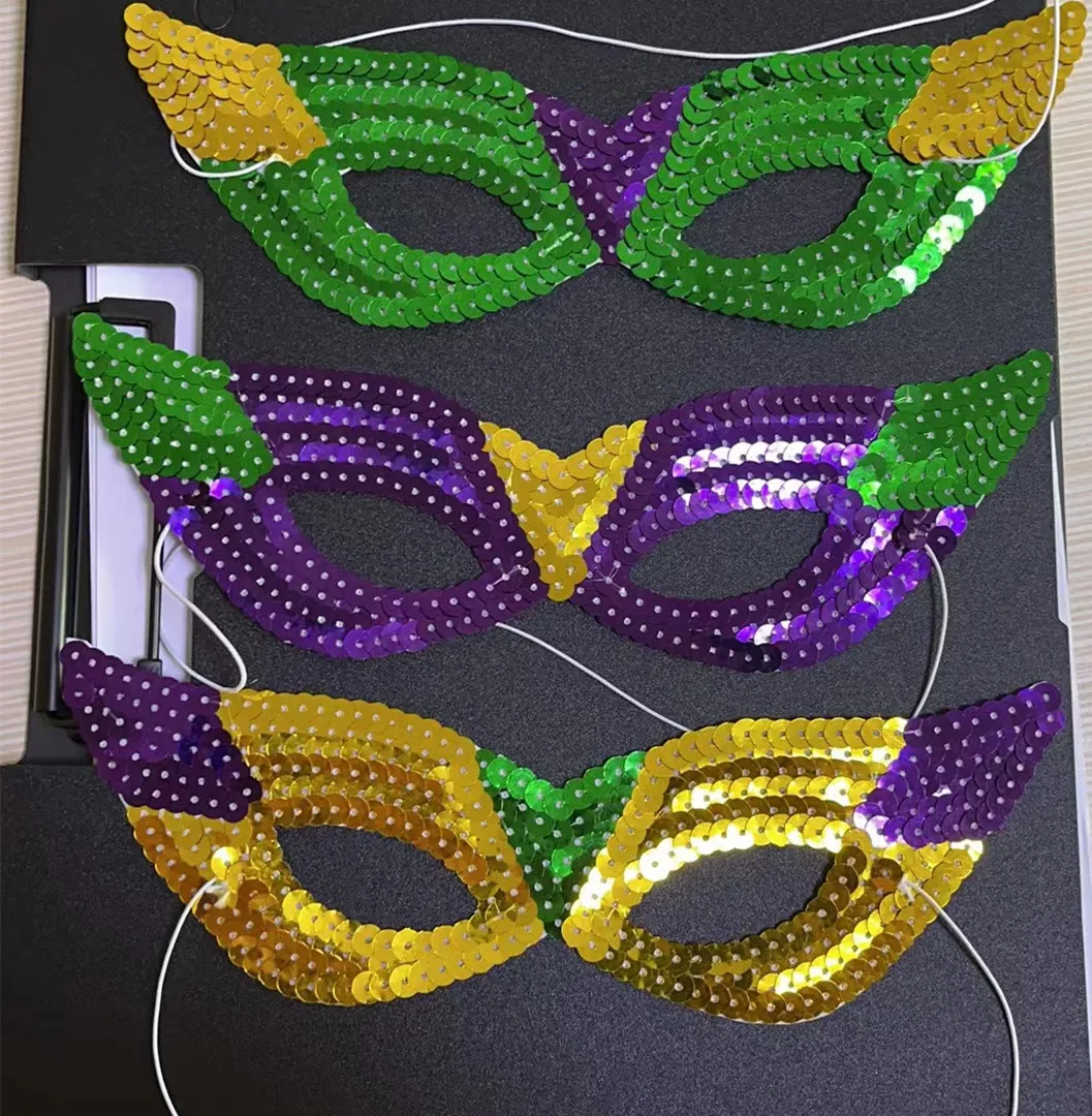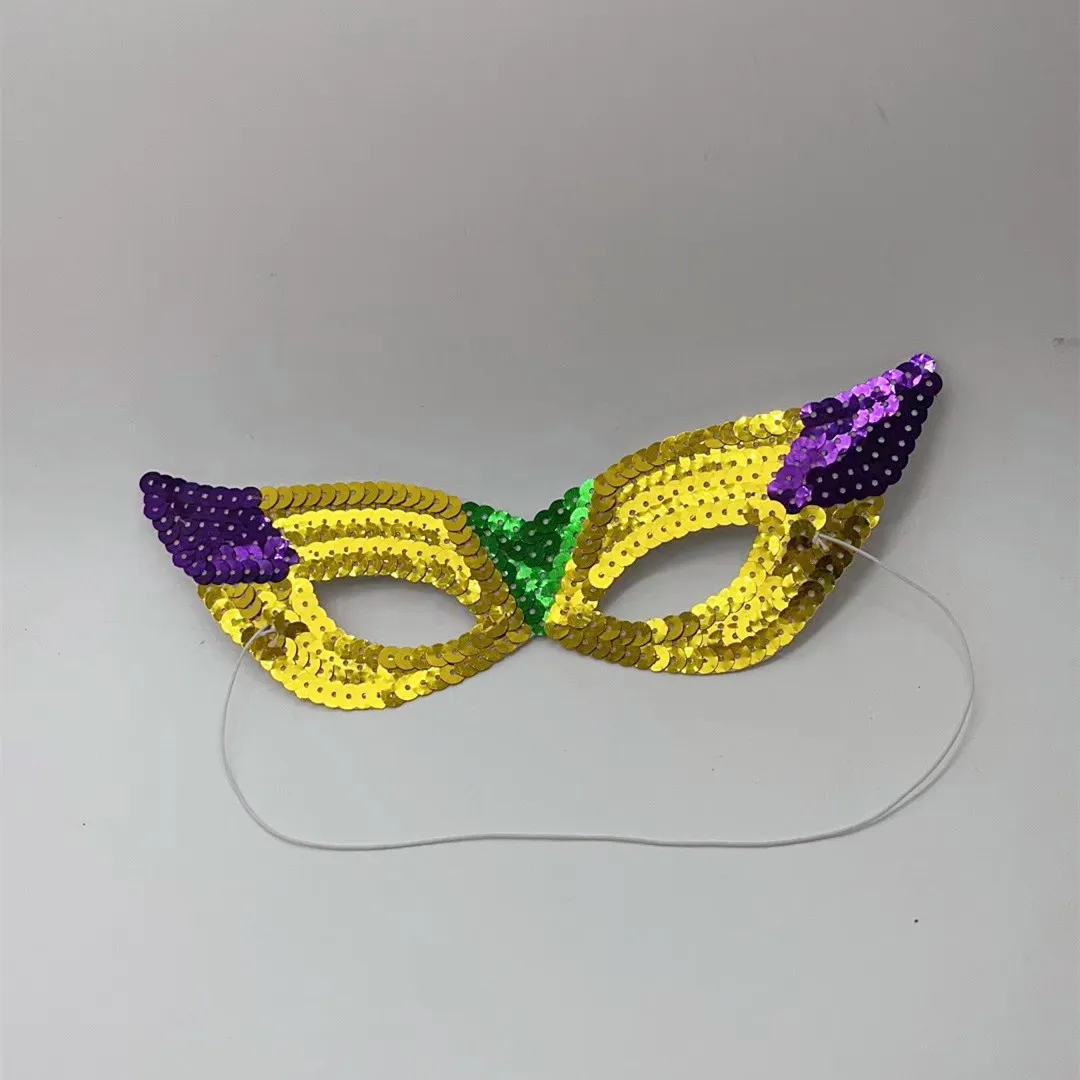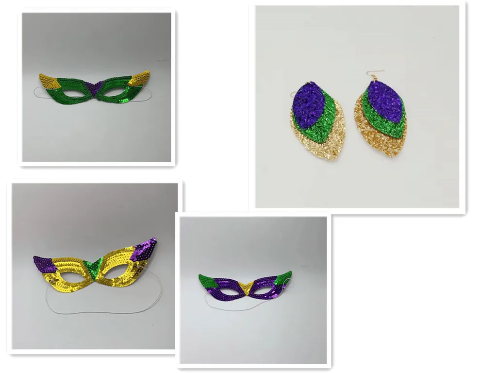 Carnaval Carnival Ball Gold Green Purple Sequin Half Face Mask Brazilian Carnival Mask Leather Earring Set