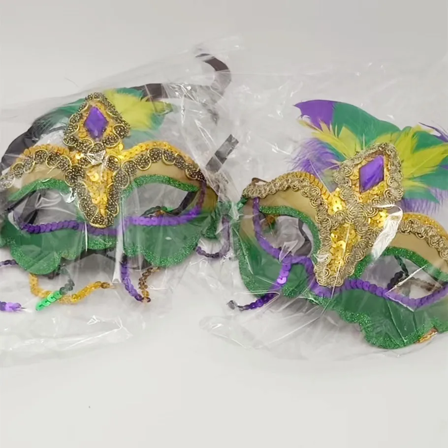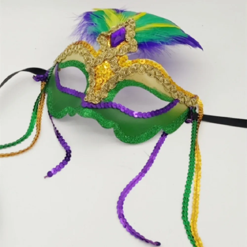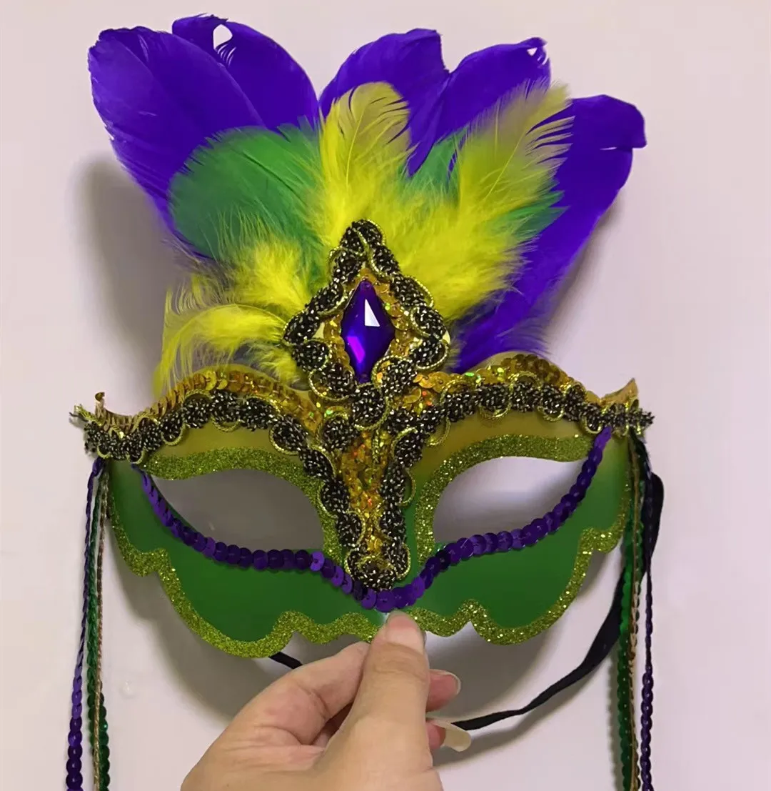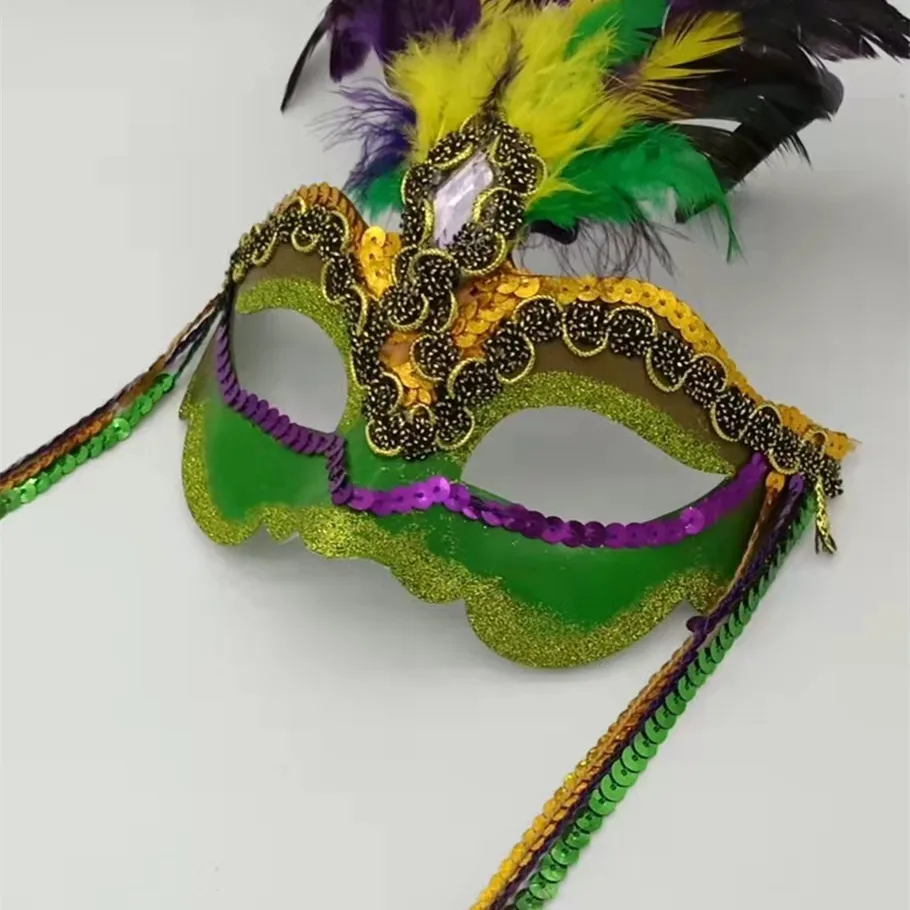 Carnaval Hot Sale Feather Painting Dusting Gold Green Purple Fringed Mask Carnival Party Carnival Mask