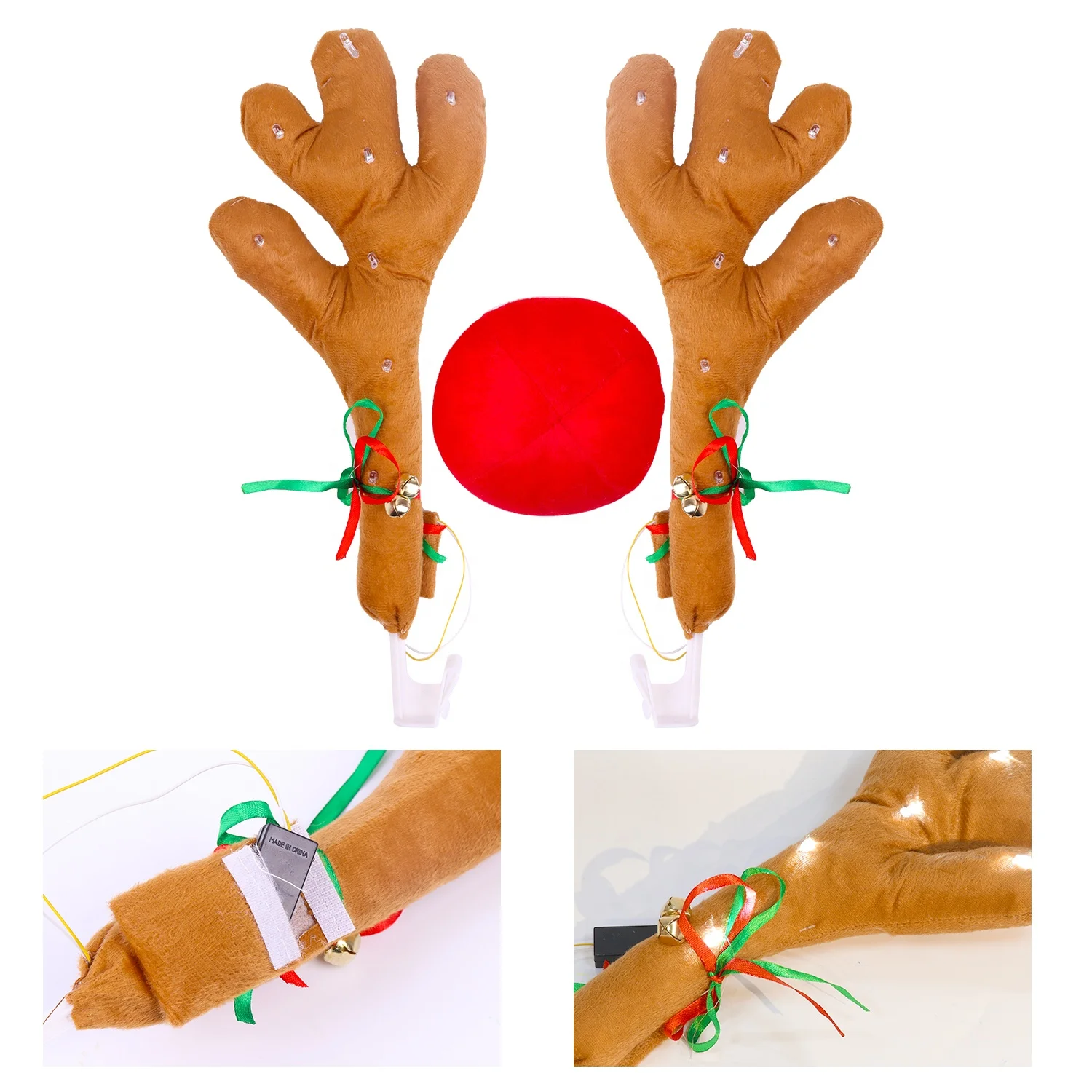 Christmas Car Decoration Reindeer Antlers Nose Kit Luminous Antlers Car Clothing Accessories Light Emitting Diode Christmas Reindeer Antlers