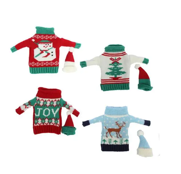 Christmas Gifts Crafts Ornaments with 4 Santa Hats Silverware Holders Ugly Christmas Sweaters Wine Bottle Caps