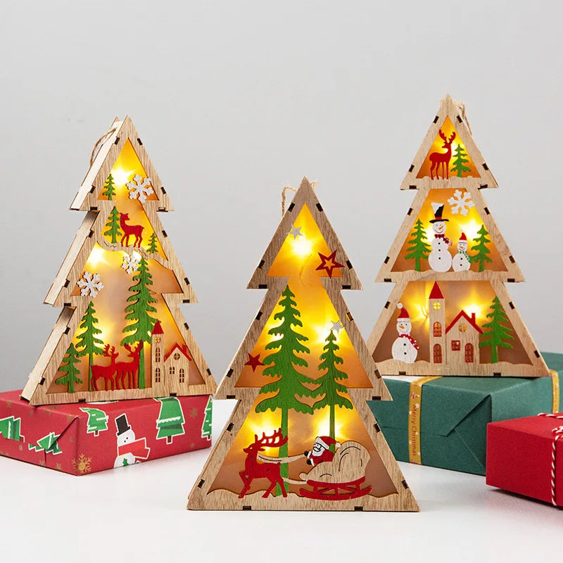 Christmas home decoration with lights Crafts wooden decoration Christmas party wooden pendant