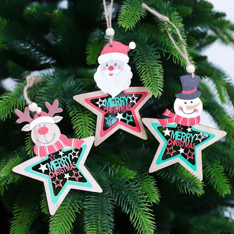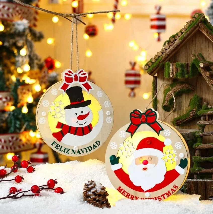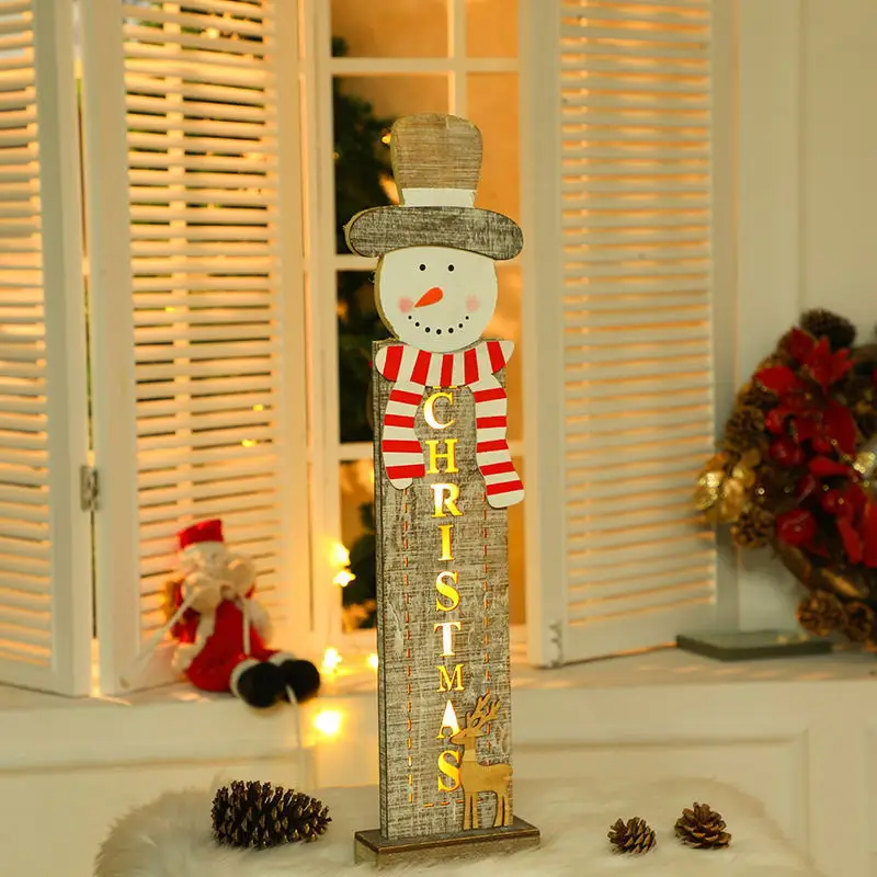 Christmas Light Ornament Christmas Wooden Santa Claus Snowman Elk Night Light Christmas Wooden Glow Decoration