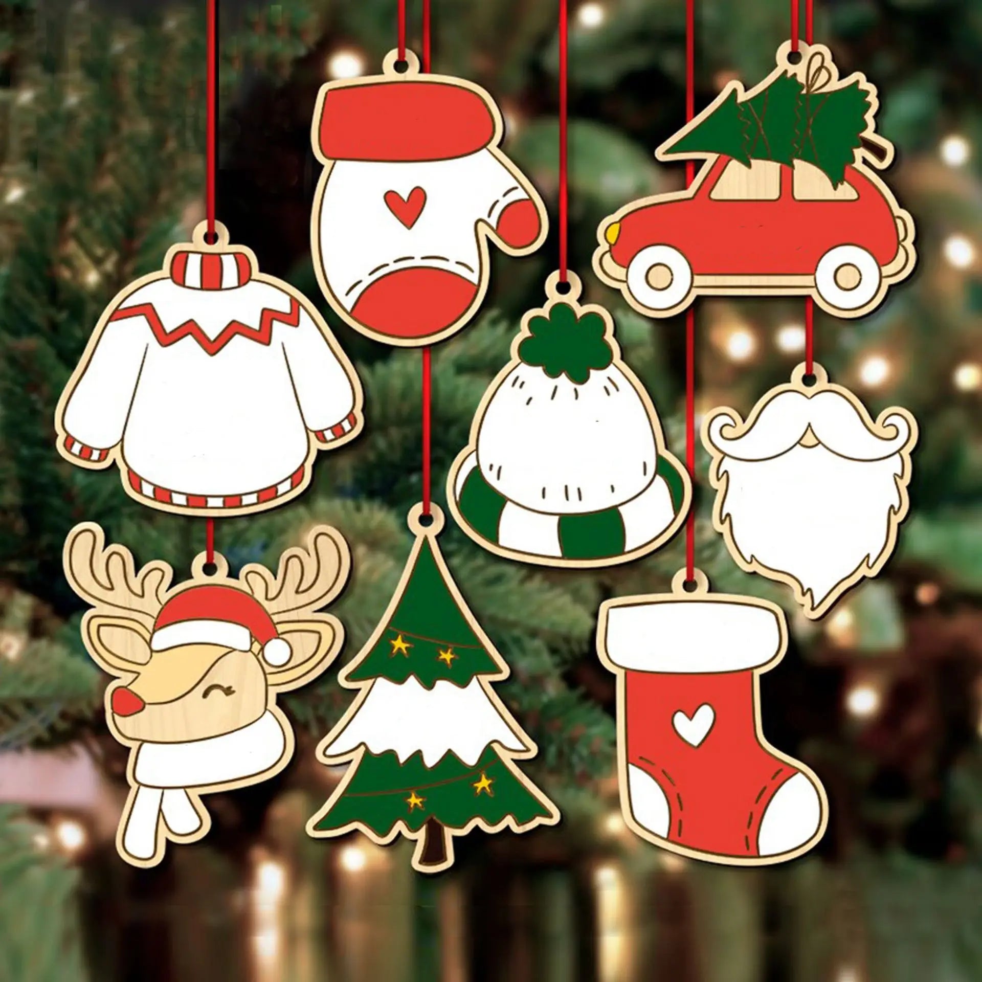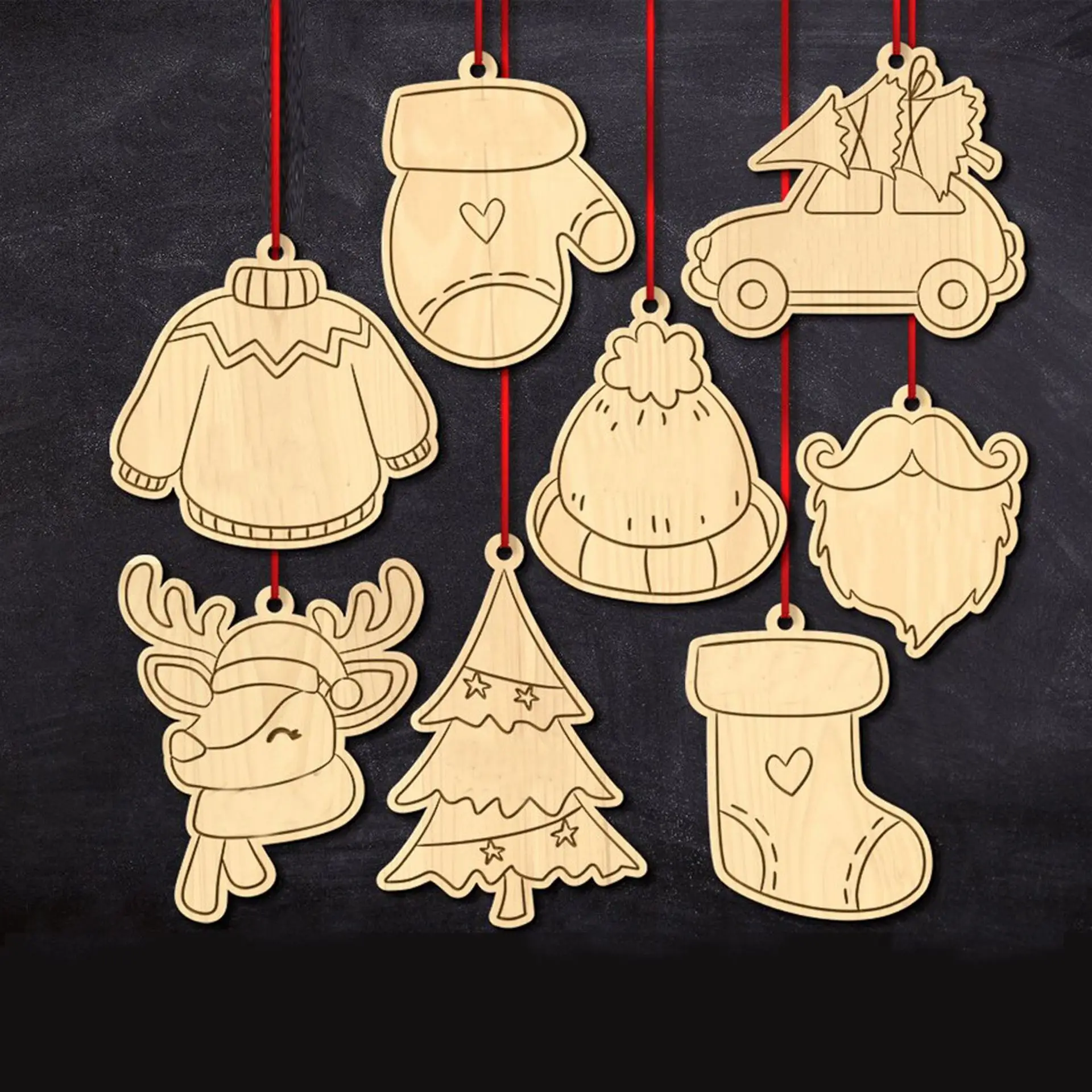Christmas ornaments wooden pendants 8 pieces can be customized DIY Christmas gifts wooden crafts