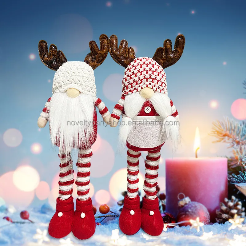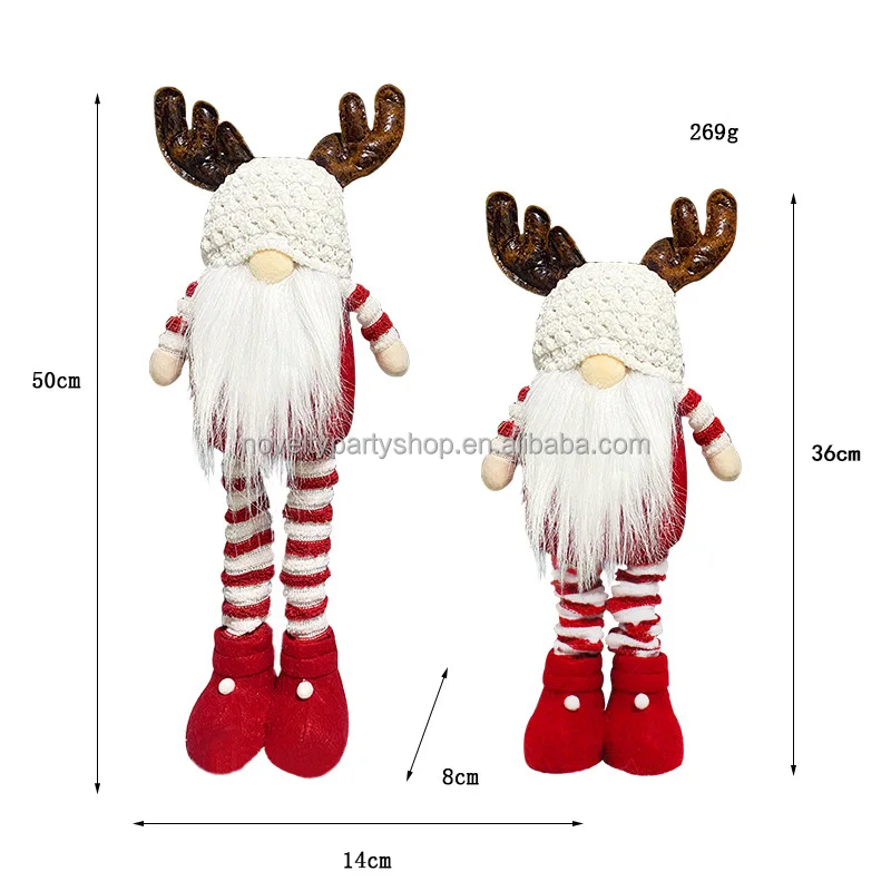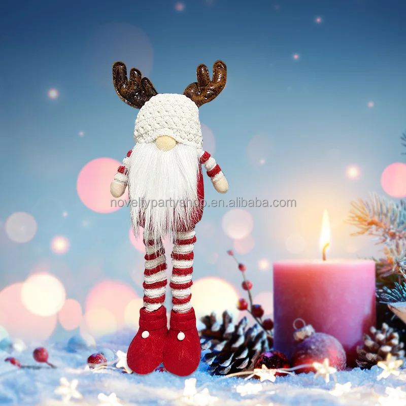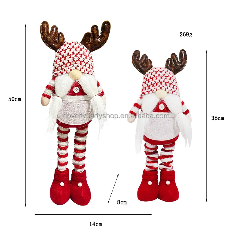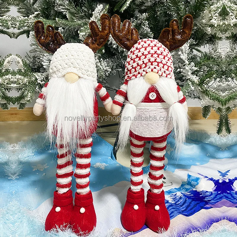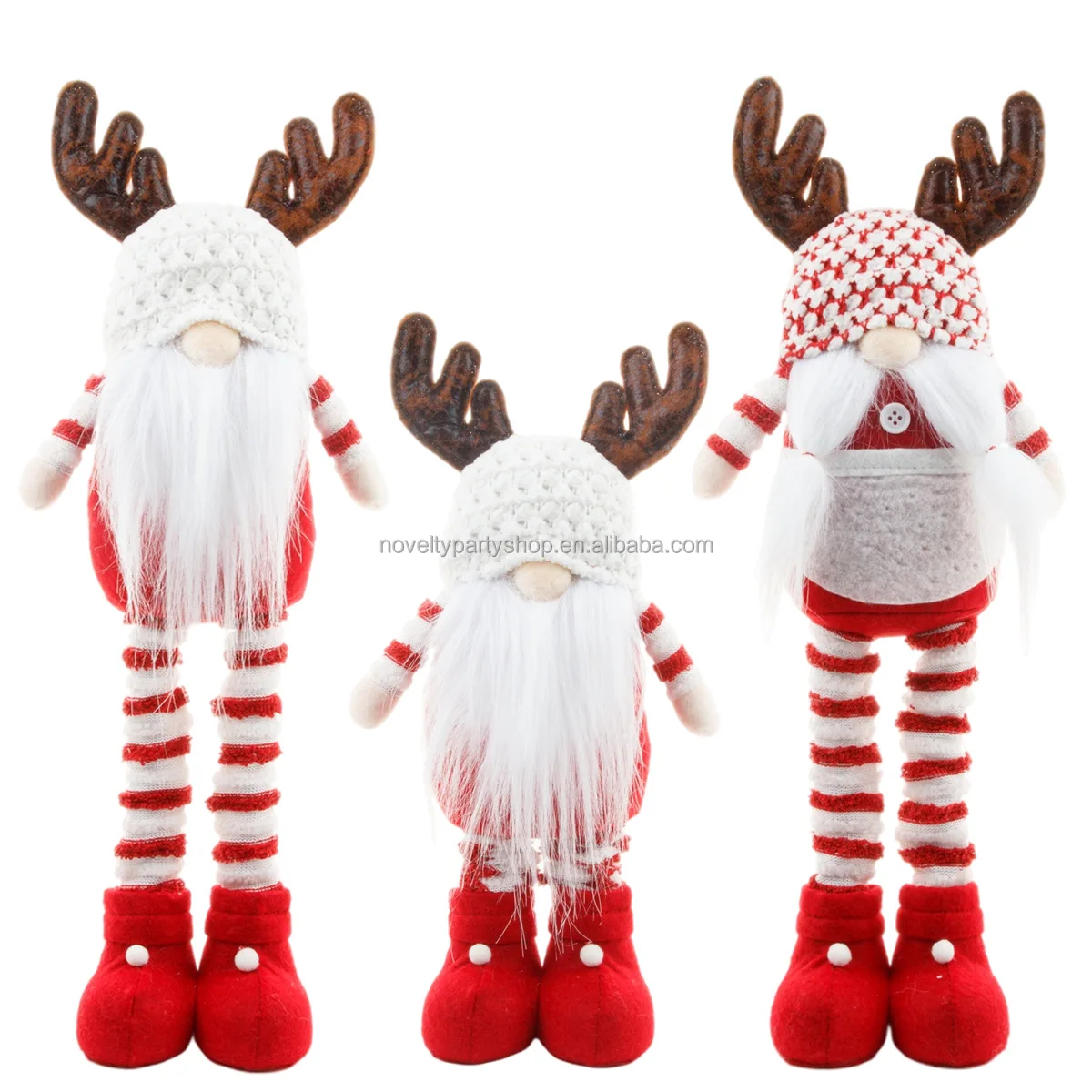Christmas reindeer gnome with retractable legs handmade faceless plush standing doll Christmas long legs gnome table ornaments