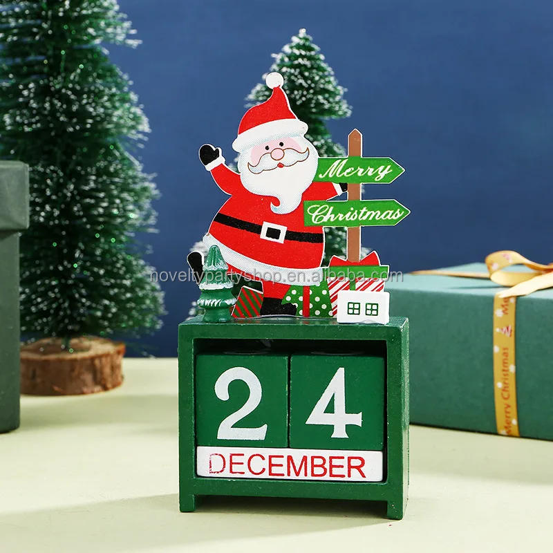 Christmas Wooden Painted Indoor Tableware Countdown Calendar Decorations Creative Santa Snowman Elk Advent Calendar Ornaments