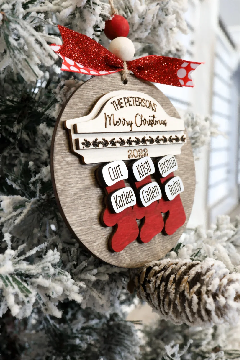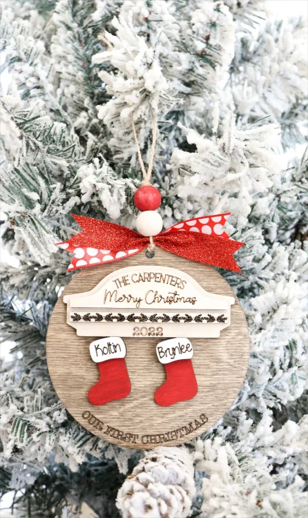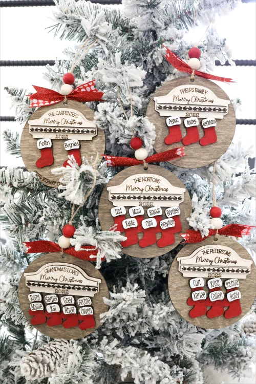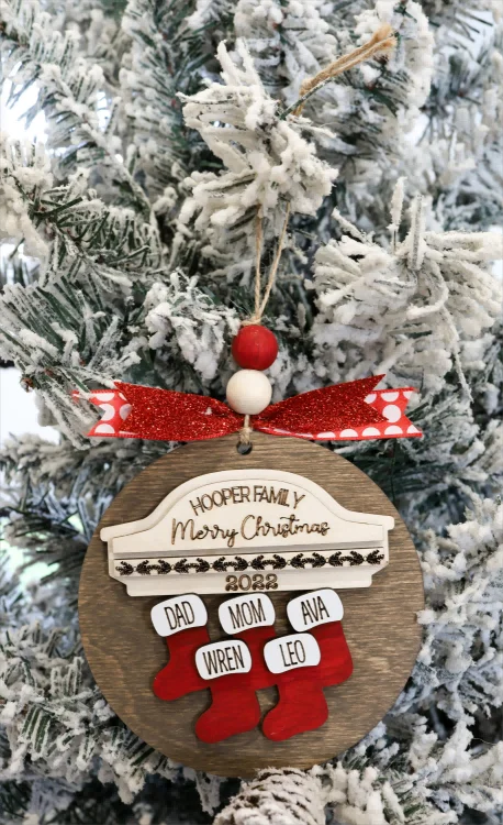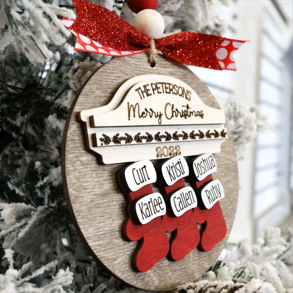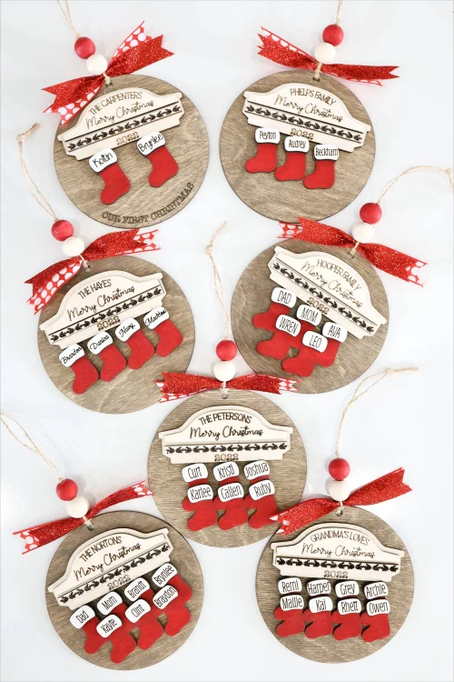Custom 2024 Family Name Stockings Ornaments Laser Cut Digital Christmas Personalized Ornaments Family Christmas Ornaments